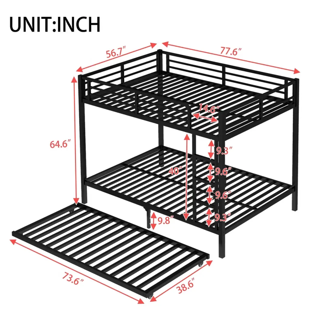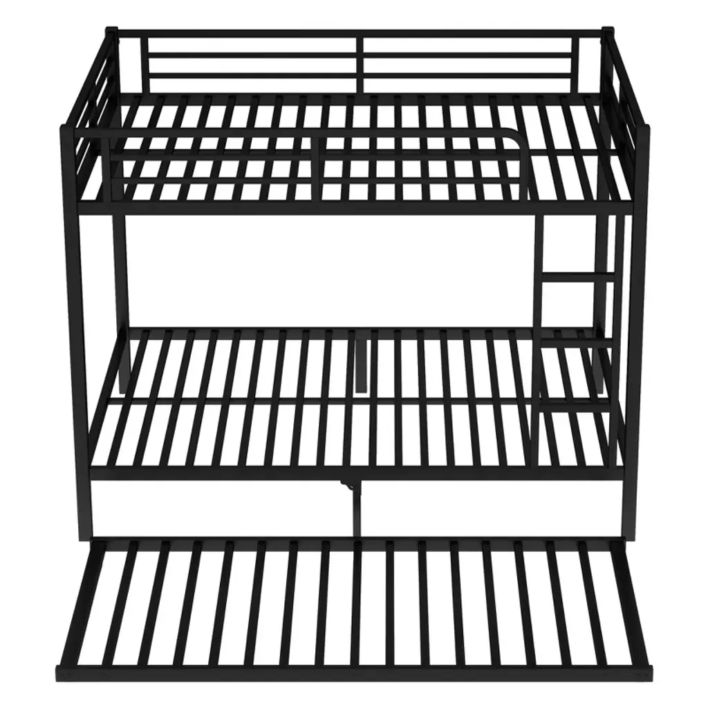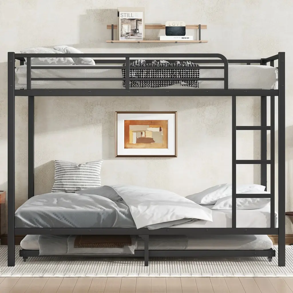 Kwpzqeb Full Over Full Bunk Bed With Twin Size Trundle, Metal Bunk Bed With Ladder & Safety Guardrails, Easy Assembly, No Box Spring Needed, Black