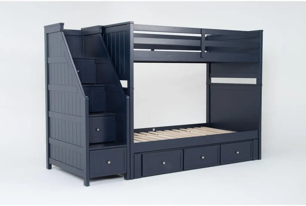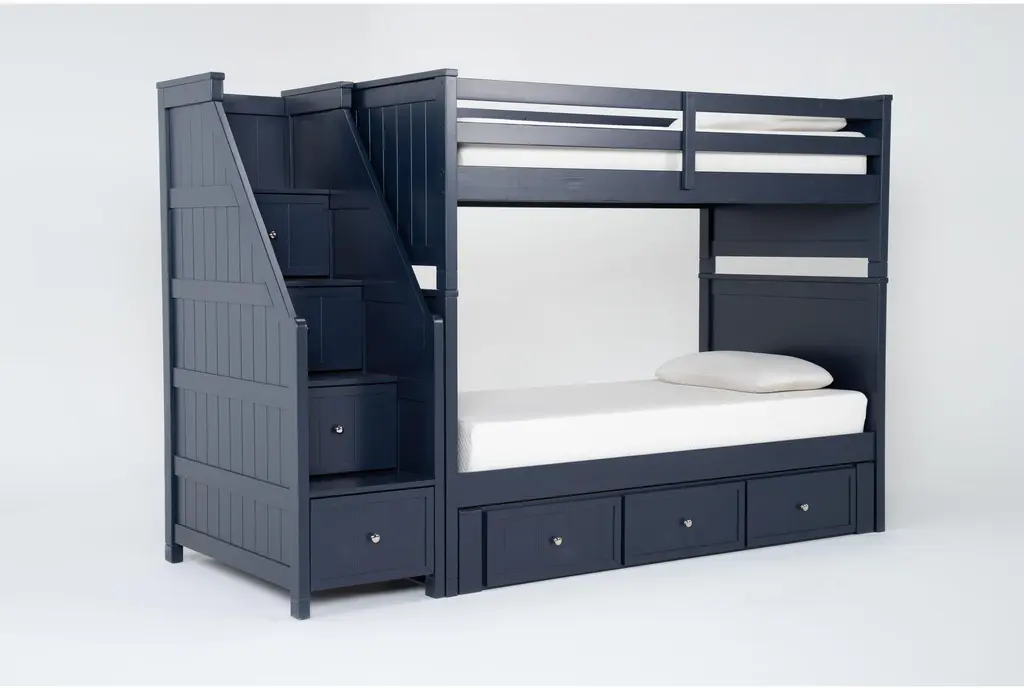 Luca Blue Full Over Full Wood Bunk Bed With Stairway & 3-Drawer Storage Unit