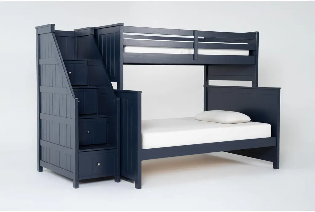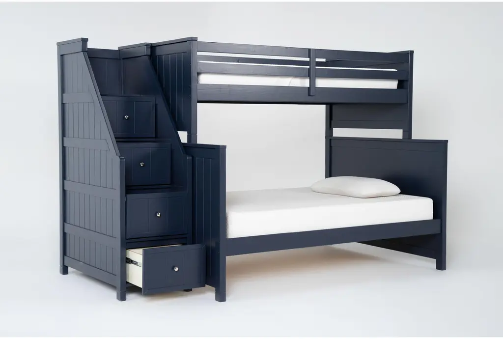 Luca Blue Twin Over Full Wood Bunk Bed With Stairway | Drawers | Storage