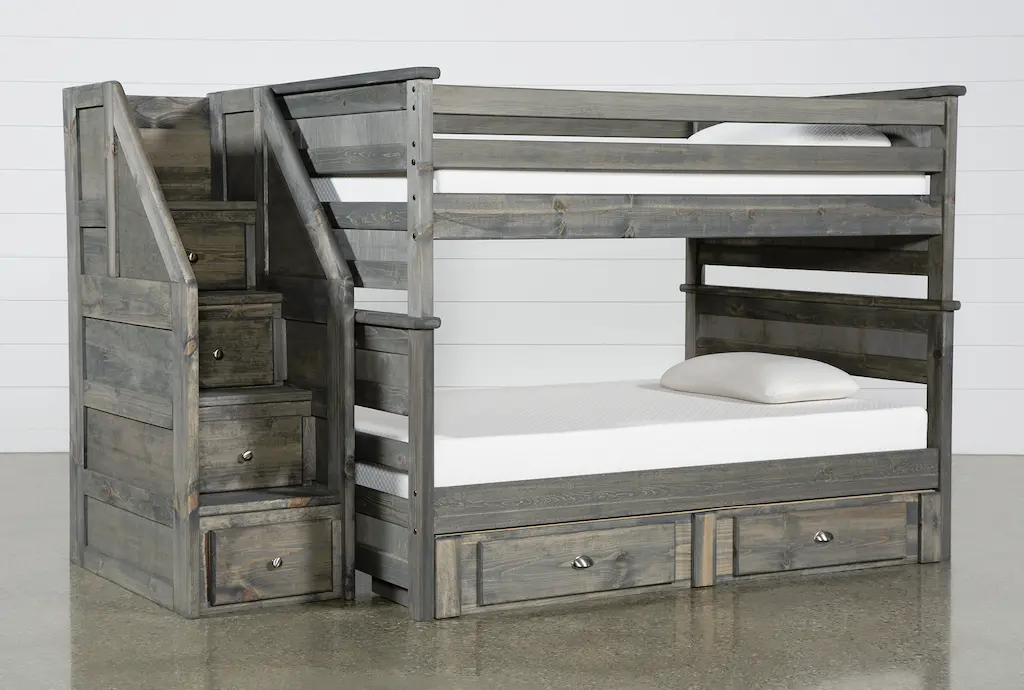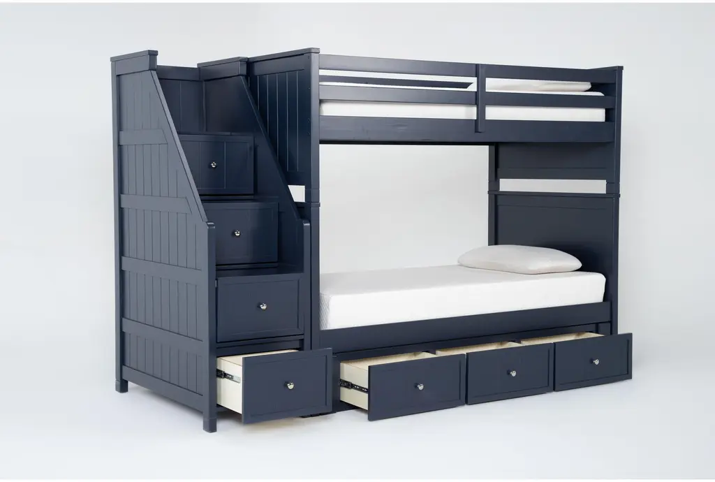 Luca Blue Twin Over Twin Wood Bunk Bed With Stairway & 3-Drawer Storage Unit