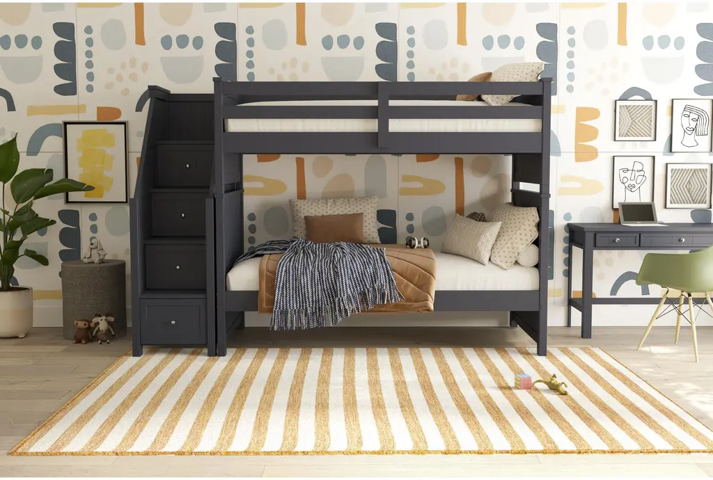 The Luca Blue Twin Over Twin Wood Bunk Bed with Stairway is a perfect addition to any kids' room. This contemporary bunk bed is designed to maximize space while providing ample storage options. The solid pine and MDF construction ensures durability and stability for years to come.