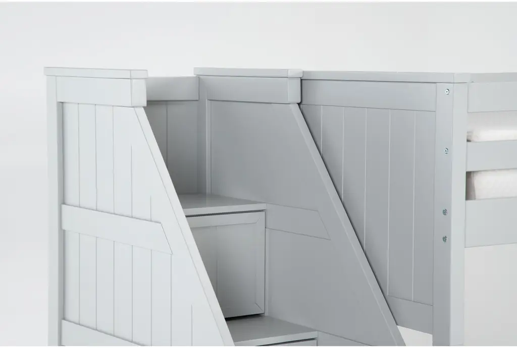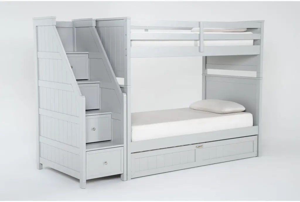 Luca Grey Full Over Full Wood Bunk Bed With Stairway & Twin Trundle | Drawers | Storage