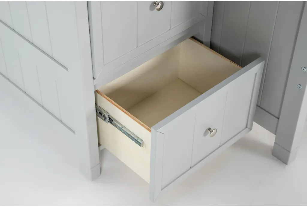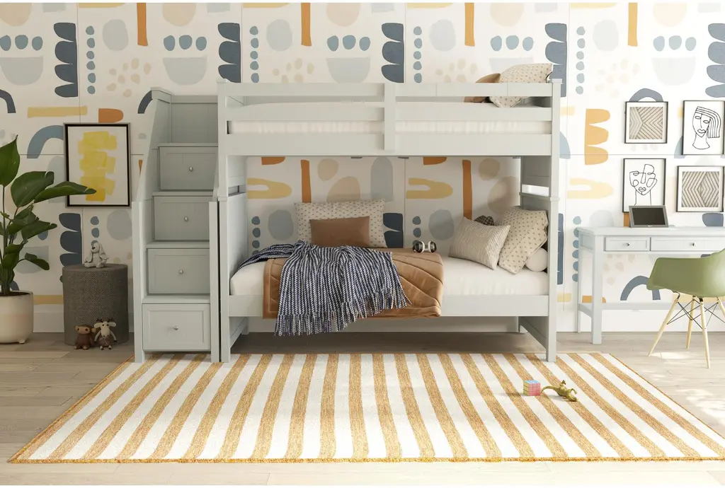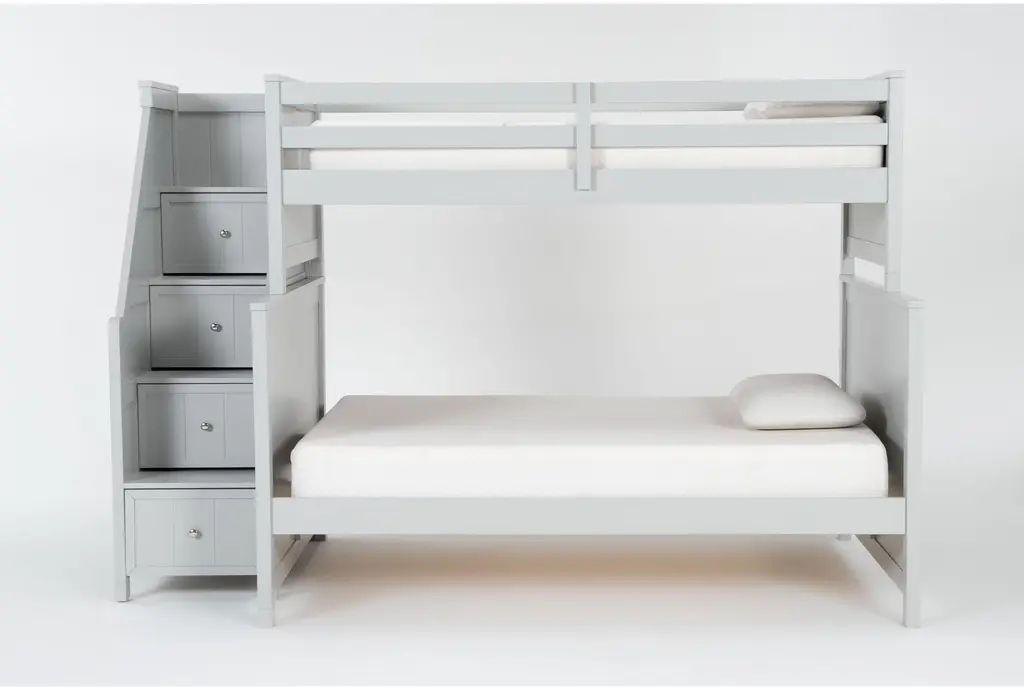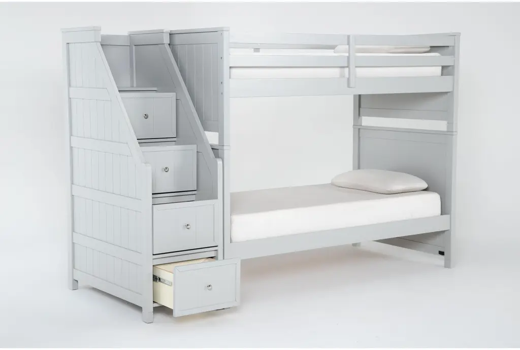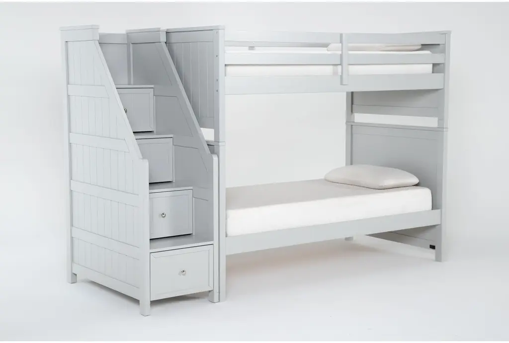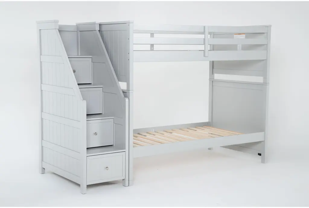 Luca Grey Twin Over Twin Wood Bunk Bed With Stairway | Drawers | Storage