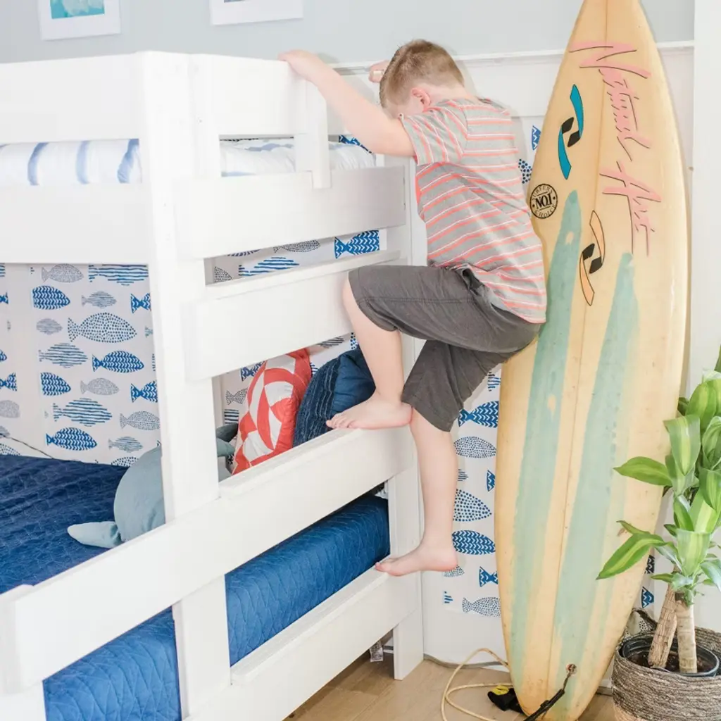 Bring the fun of the farm in with the Modern Farmhouse Twin XL Over Queen Bunk Bed from Max & Lily. With a fabulous barnwood finish and enhanced safety, this bed offers the perfect combination of fun and functional that kids and parents love. The durable, non-toxic, low-VOC finish makes this bed a safe choice for any kids room. Sleep and storytimes feel secure thanks to a 400 lb resting weight capacity for each sleeping surface. Solid New Zealand pine wood construction, solid plywood slats and metal support bar provide strong, durable support. Works with standard twin xl and queen-size mattresses and does not require box springs or bunkie boards. Super safe design meets or exceeds Federal safety standards for kids furniture. Ships in one box with instructions and hardware included. 2+ adults make assembly quick and easy. This bunk bed is compatible with standard twin XL and queen size mattresses between 5 and 8 inches thick. No box spring or bunkie board is required for this bed. When it’s time for play, this beds’ space saving design frees up plenty of room for kids to be kids. The Modern Farmhouse Twin XL Over Queen Bunk Bed from Max & Lily offers exceptional quality and affordability that kids and their parents will enjoy for years to come. Max & Lily is a member of the Maxwood family of brands - the kids furniture experts bringing a tradition of superior quality, safety and fun!