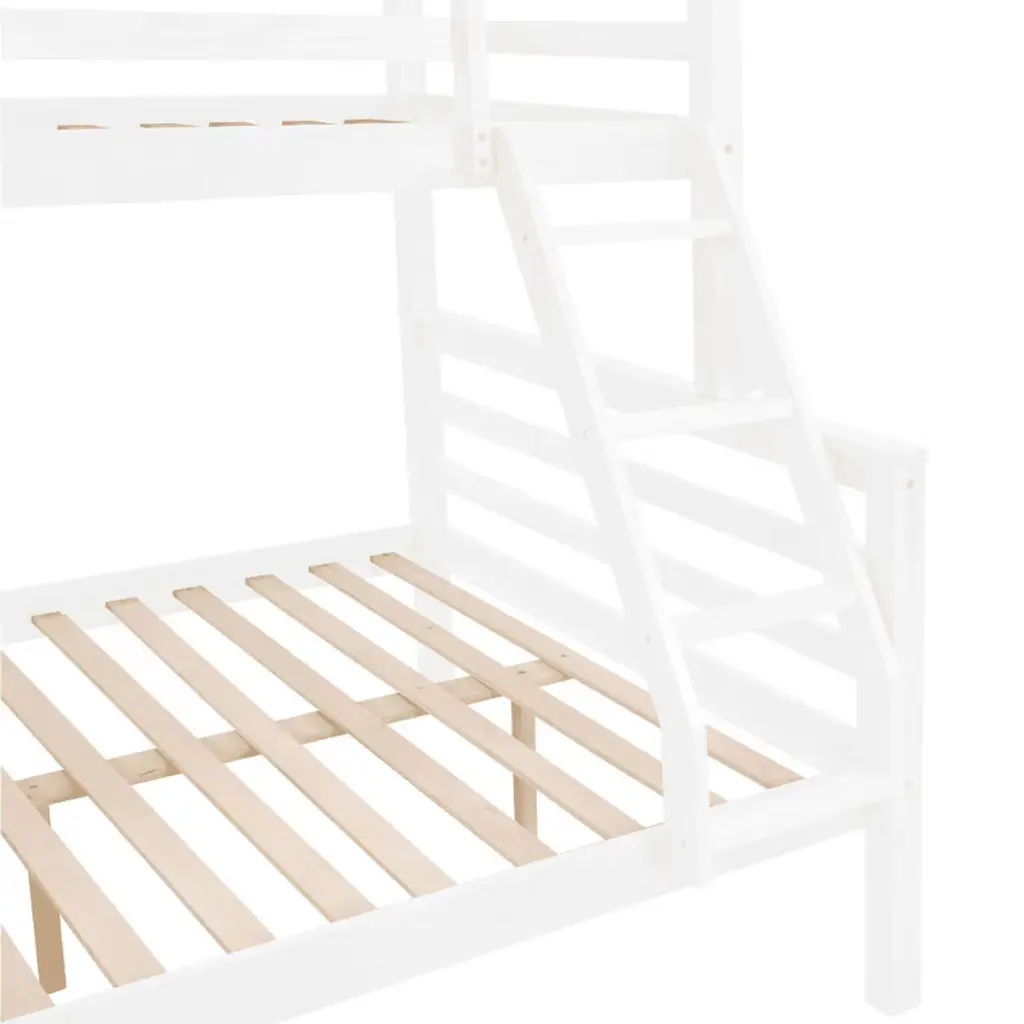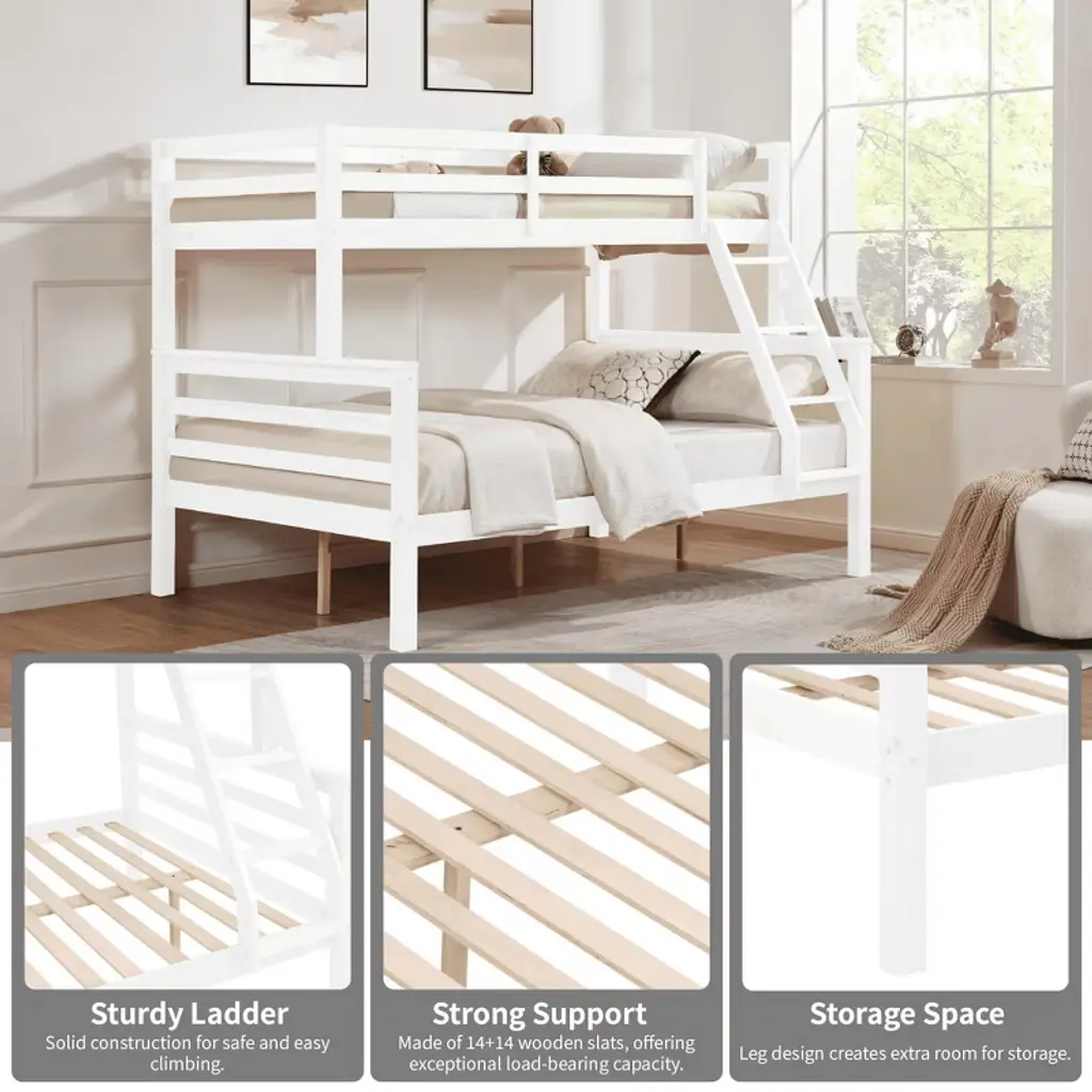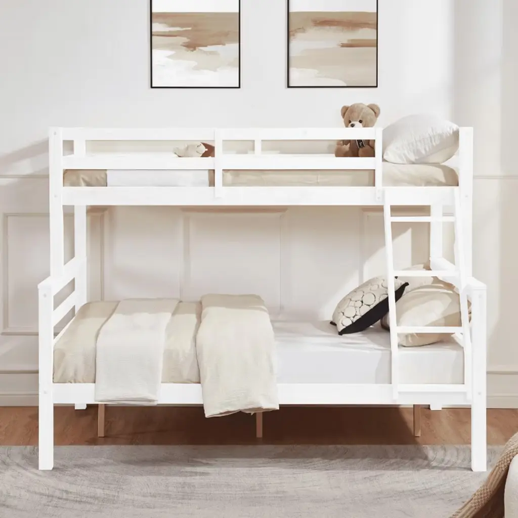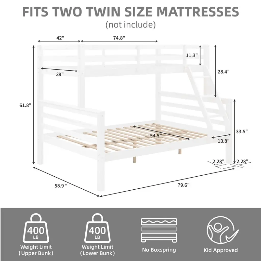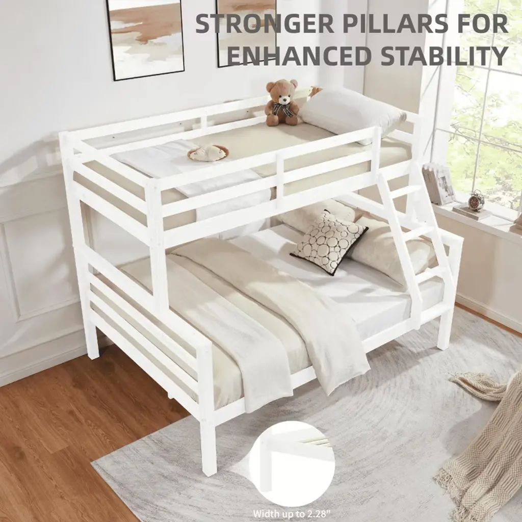 Mayeerty Twin Over Full Bunk Bed With Ladder, Wooden Bed Frame With High Guardrail And Ladder For Kids, No Box Spring Needed, White