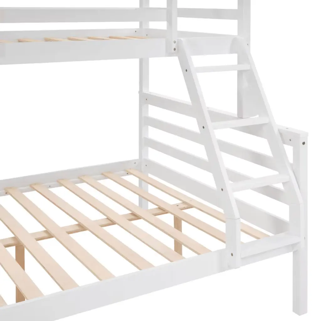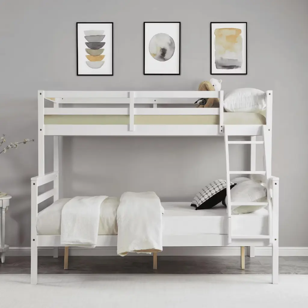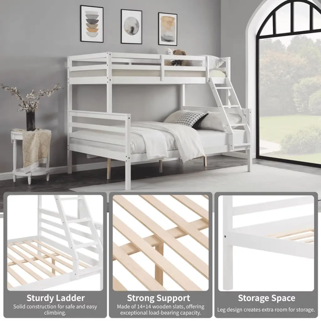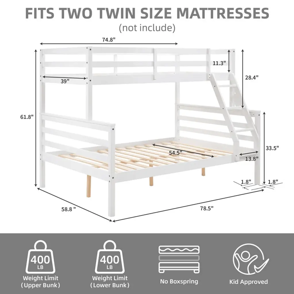 Mayeerty Twin Over Full Bunk Bed With Ladder, Wooden Bed Frame With High Guardrail And Ladder For Kids, No Box Spring Needed, White