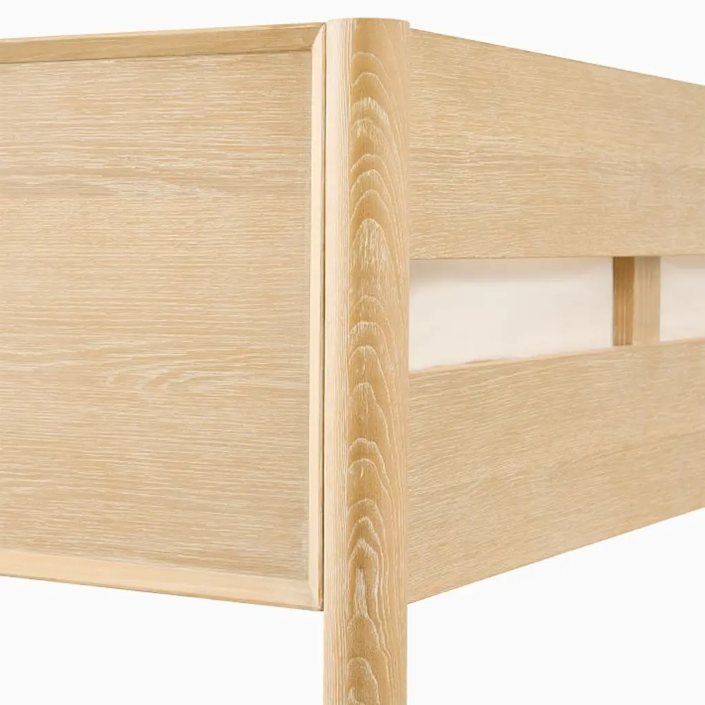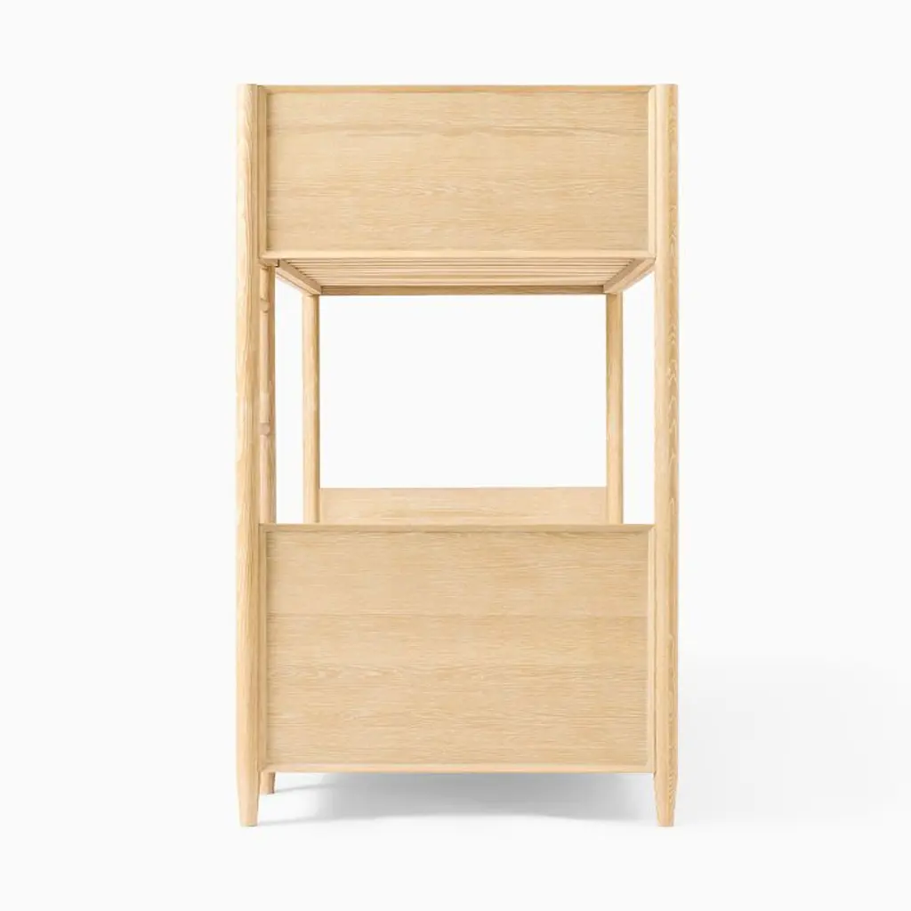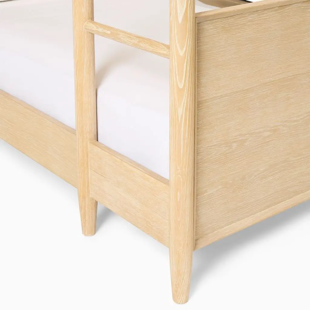 Brought to you in collaboration with Pottery Barn Teen, our GREENGUARD-certified Mid-Century Collection combines timeless style with durable craftsmanship. Each piece is made in a Fair Trade Certified™ facility from sustainably sourced wood that's kiln dried for extra strength, complete with water-based finishes. This double bunk bed maximizes your child's space, with room for a Twin bunk mattress up top and down below. Brought to you in collaboration with Pottery Barn Teen. Kiln-dried solid and engineered wood. Solid pine wood slats (included). Covered in child-safe, water-based finishes on all sides. Made with FSC®-certified wood from responsibly managed forests. Ladder is fixed (on the side pictured). A bunk mattress must be used on the upper bunk; do not use a box spring on either bunk. This bunk bed does not convert into two separate beds. Minimum recommended ceiling height: 8'. GREENGUARD Gold Certified. This low-emitting product has been screened for over 10,000 chemicals and VOCs. Rigorously tested to meet or exceed all required and voluntary safety standards. The Consumer Product Safety Commission recommends that top bunks not be used for children under 6 years of age. Made in a Fair Trade Certified™ facility in Vietnam.