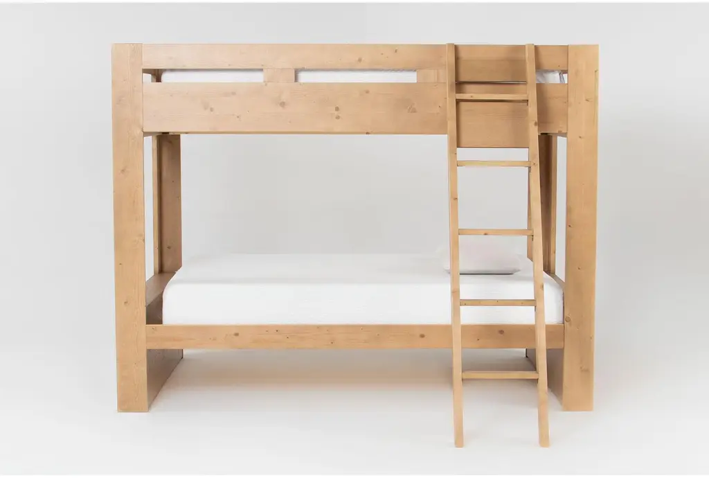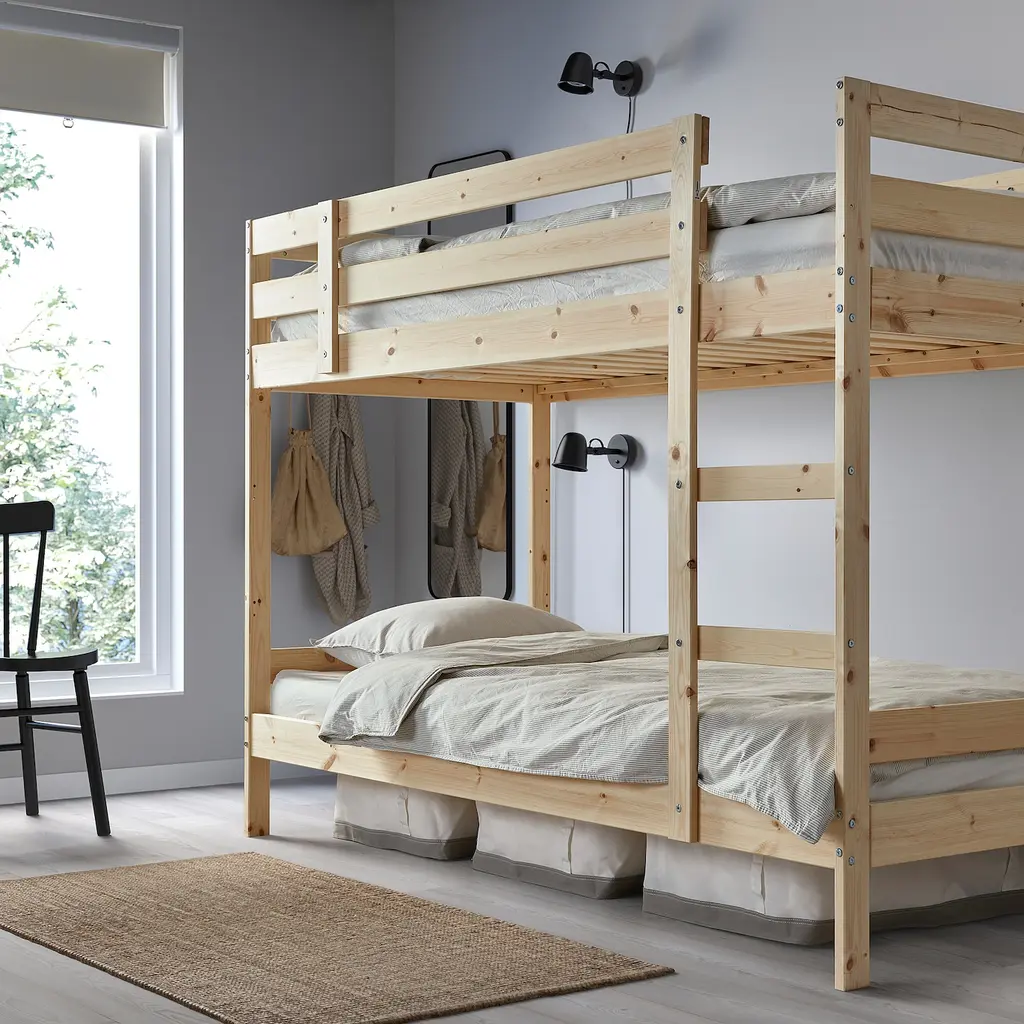 MYDAL Bunk bed frame - pine Twin. The ladder can mount on the left or right side of the bed. Made of solid wood, which is a durable and warm natural material. A good solution where space is limited. Two people are needed to assemble this furniture. Slatted bed base is included.