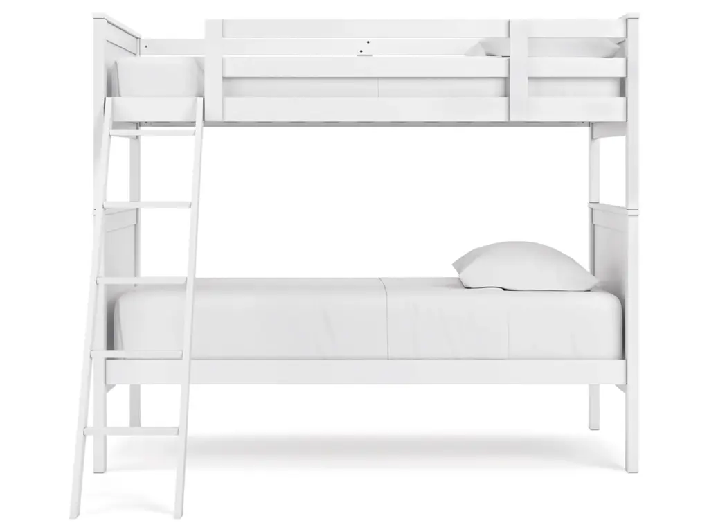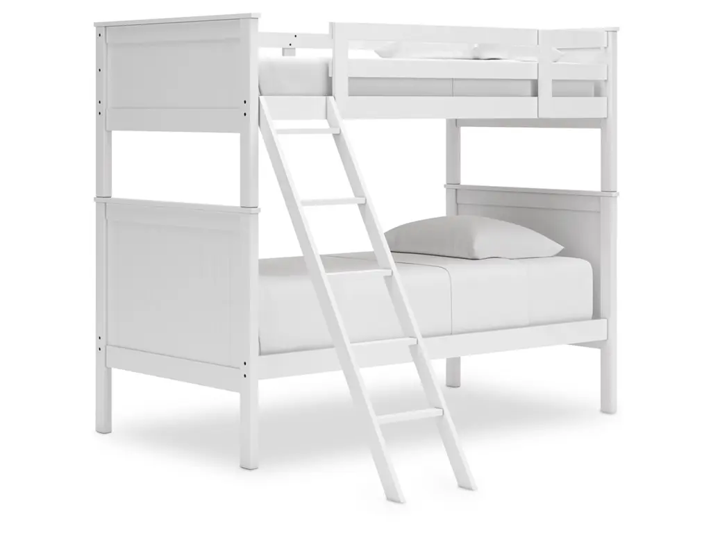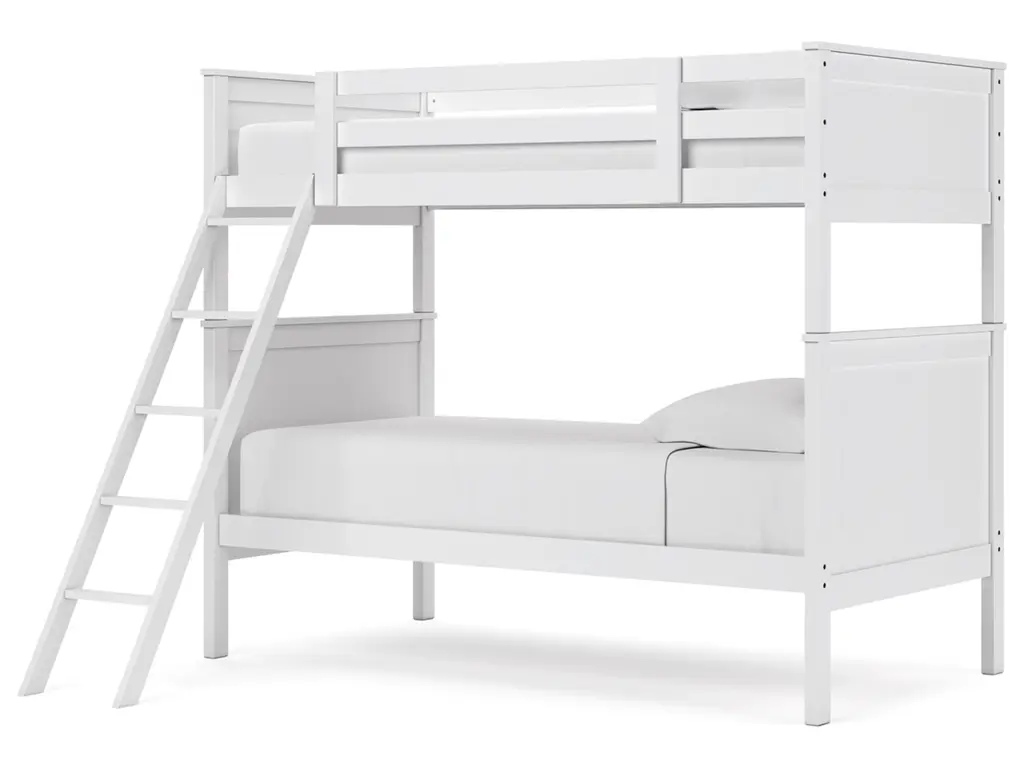 Maximize space and turn your kids' bedtime into an adventure with the cool Nextonfort twin-over-twin bunk bed. It's an effortless addition to any bedroom, with a timeless Shaker style that's wonderfully finished in crisp white. Guard rails on the top bunk help everyone get a good night’s rest. And the simplified design means easy assembly. Who doesn’t like that?