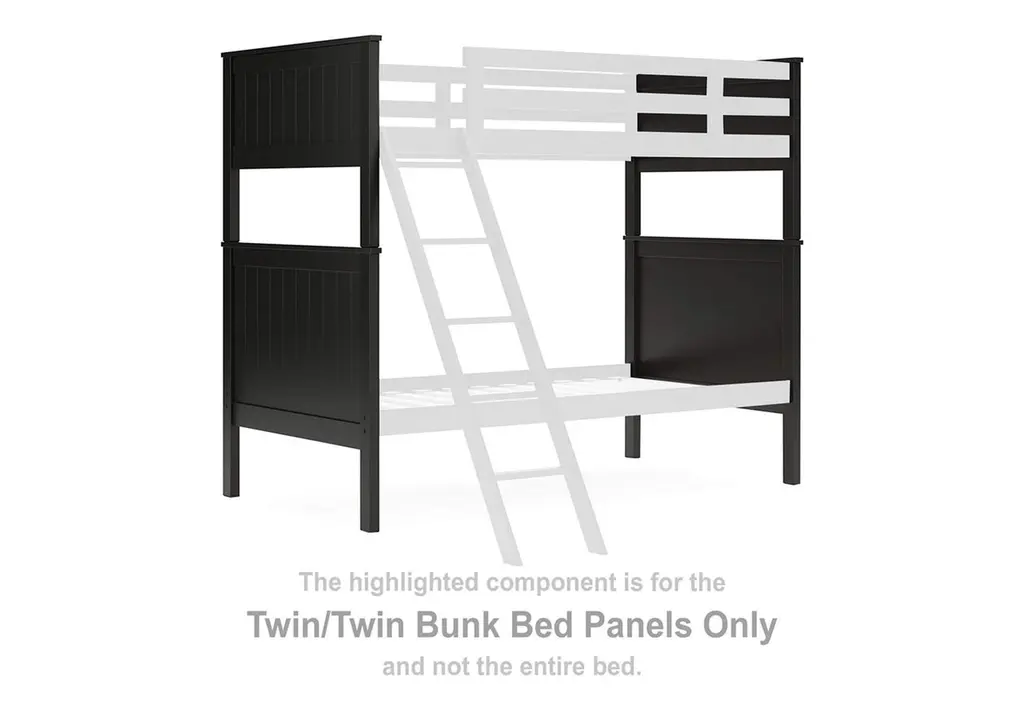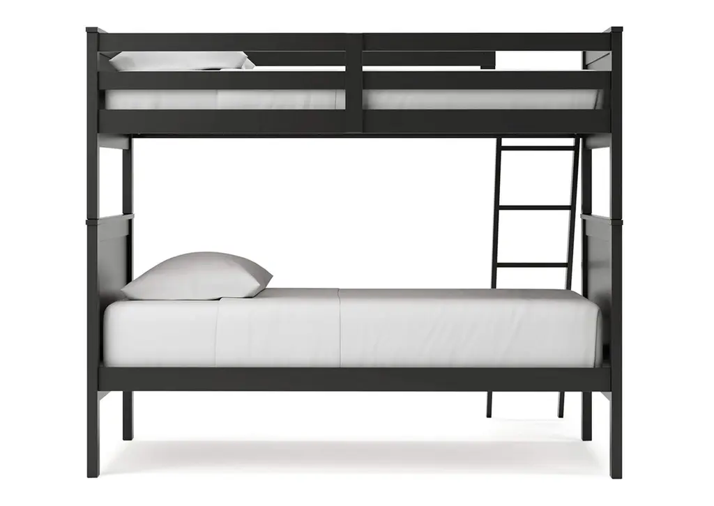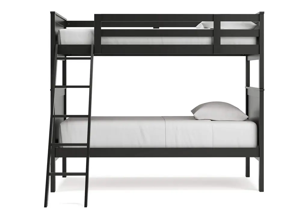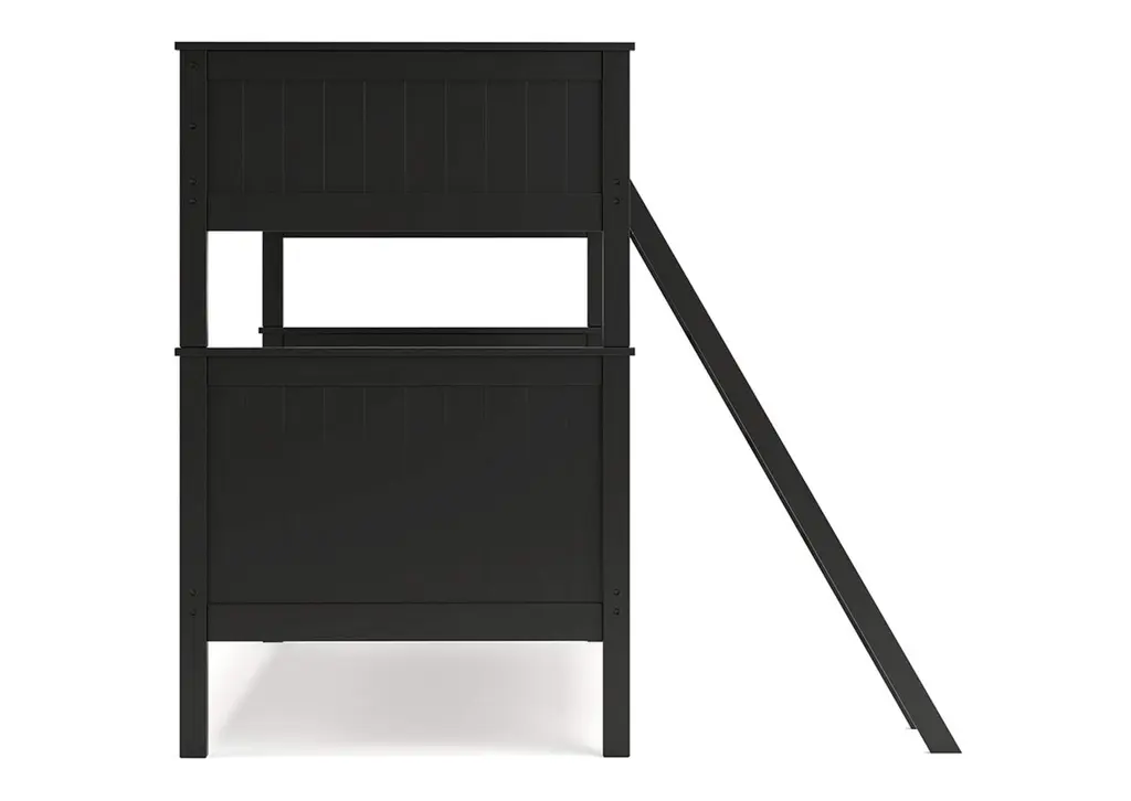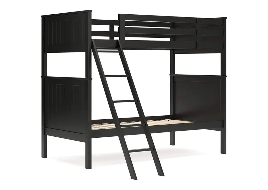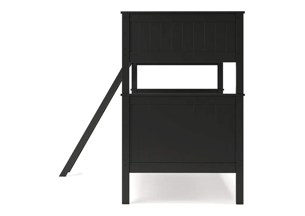 Maximize space and turn your kids' bedtime into an adventure with the cool Nextonfort twin-over-twin bunk bed. It's an effortless addition to any bedroom, with a timeless Shaker style that's wonderfully finished in black. Guard rails on the top bunk help everyone get a good night’s rest. And the simplified design means easy assembly. Who doesn’t like that? Weight 176.000 lbs. (79.2kgs.)
