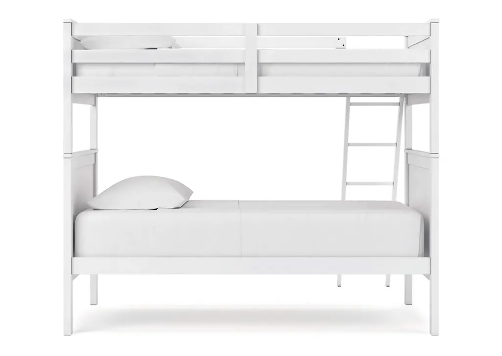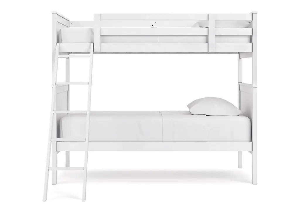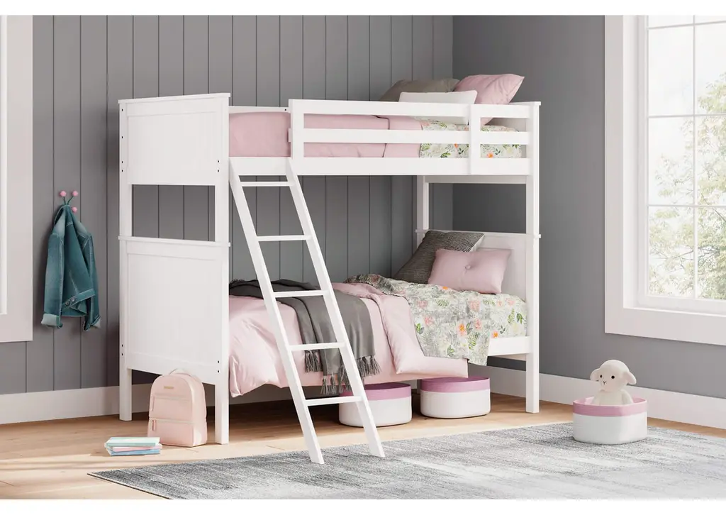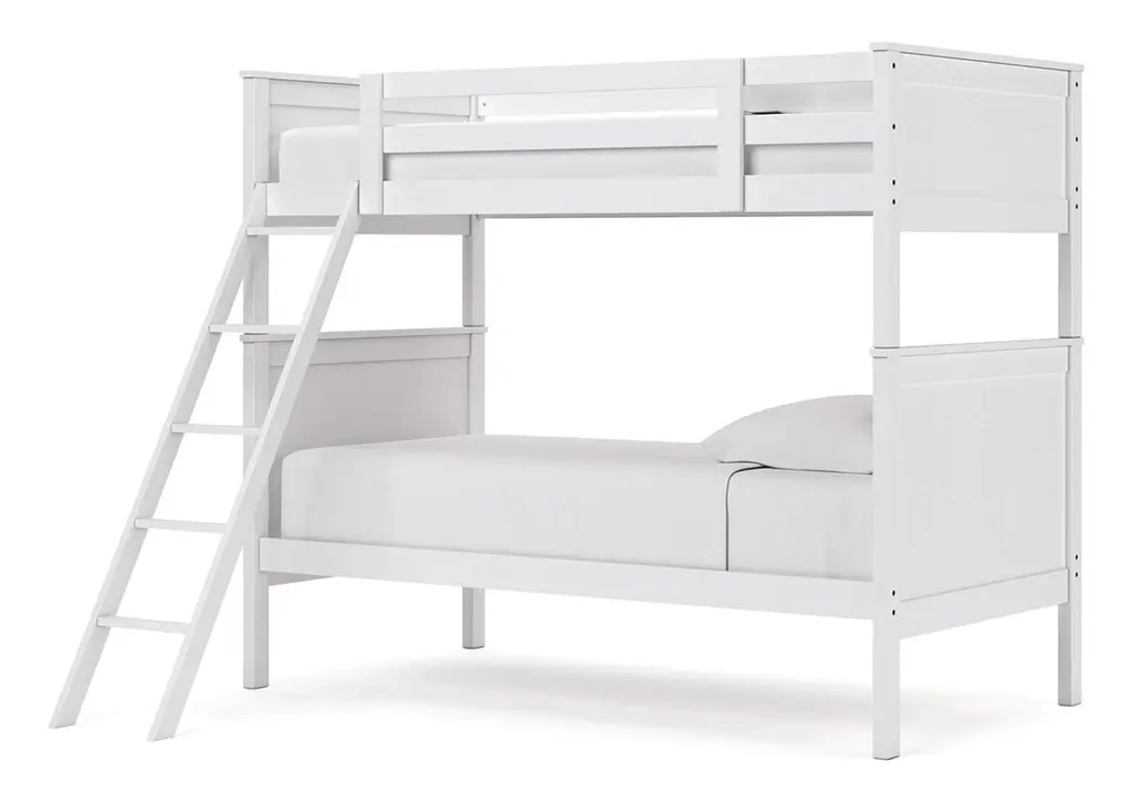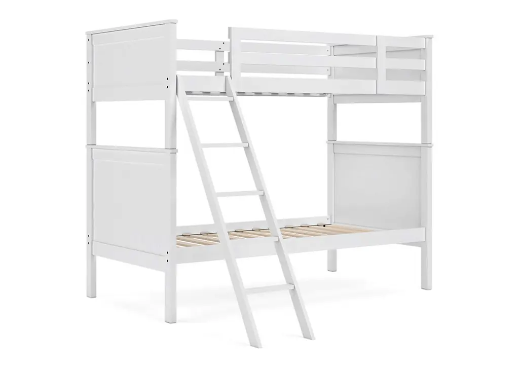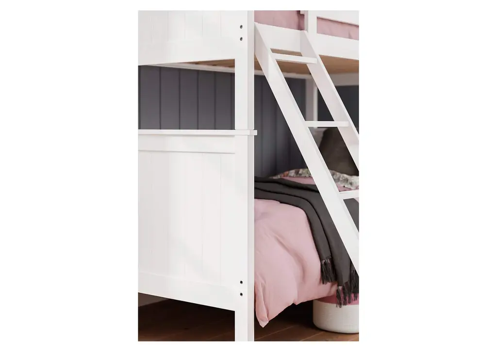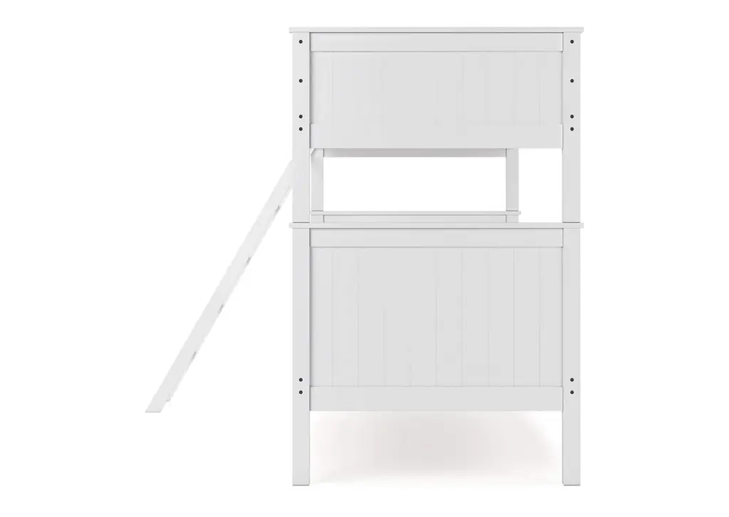 Maximize space and turn your kids' bedtime into an adventure with the cool Nextonfort twin-over-twin bunk bed. It's an effortless addition to any bedroom, with a timeless Shaker style that's wonderfully finished in crisp white. Guard rails on the top bunk help everyone get a good night’s rest. And the simplified design means easy assembly. Who doesn’t like that? Weight 176.000 lbs. (79.2kgs.)