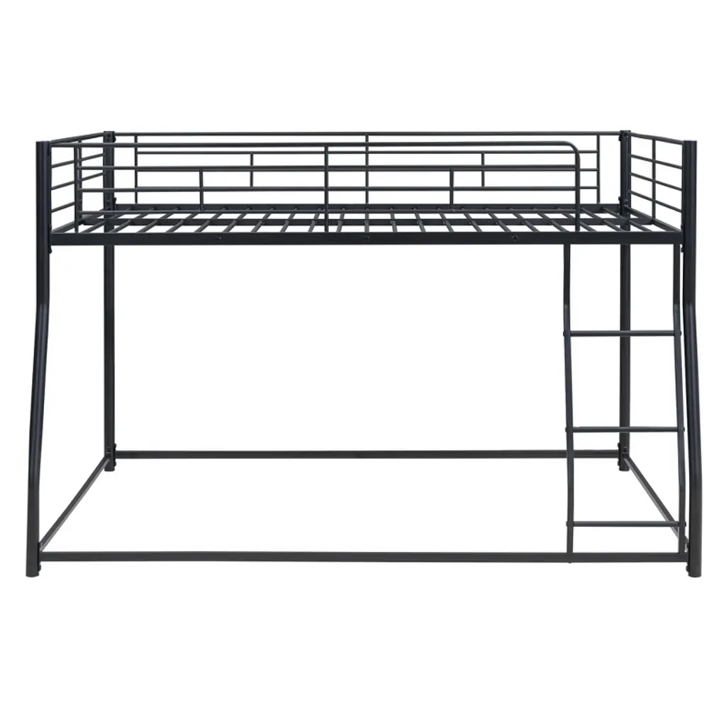 Paged Full Xl Over Queen Bunk Bed Modern Simple Metal Bed Frame With Guardrail And Inclined Ladder For Bedroom, Black
