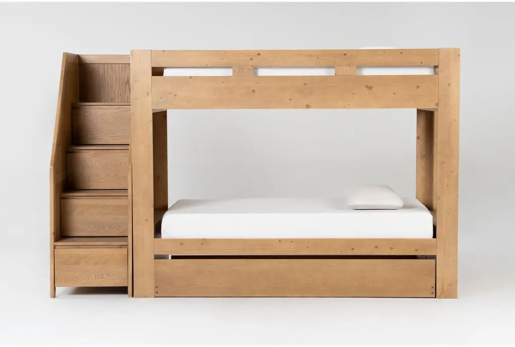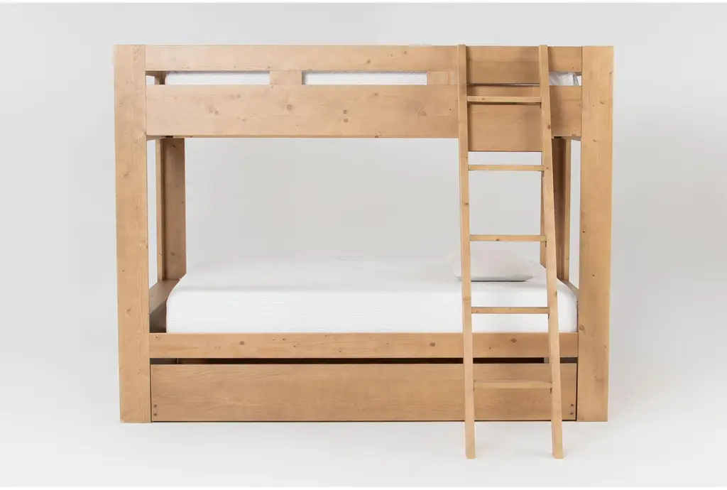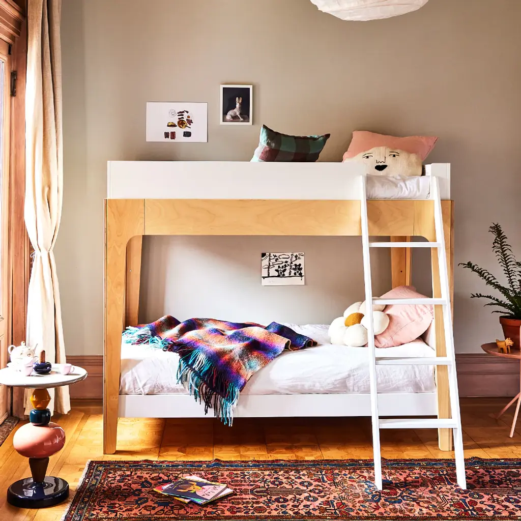 Ready to bring your child's sleep space to new heights, the Perch Twin Bunk Bed from Oeuf wows with its space-saving floor plan and practical good looks. Equipped with a kid-friendly ladder and sturdy safety wall, kids (and parents) sleep tight all night long. Highlights Sustainability