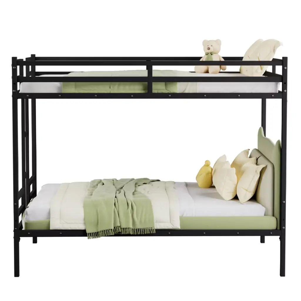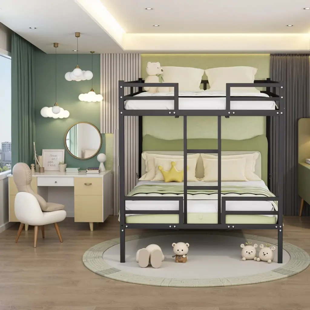 Product Features ¡¾Durable Construction¡¿This bunk bed with metal bed frame supports 110 lbs per bunk for long-lasting stability.¡¾Safety Features¡¿The high guardrail of the upper bed ensures the safety of children£¬The ladder makes climbing easier.¡¾Stylish Design & Extra Storage¡¿The sleek black finish of this bunk bed brings sophistication and elegance to bedroom d¨¦cor. The underbed space contributes to better tidiness, providing extra storage for your belongings.¡¾Easy Assembly ¡¿The comes with user-friendly instructions and all necessary hardware for hassle-free assembly. Its streamlined design ensures ease of cleaning and maintenance. Descriptions ¡¾Durable Construction¡¿This bunk bed with metal bed frame supports 110 lbs per bunk for long-lasting stability.¡¾Safety Features¡¿The high guardrail of the upper bed ensures the safety of children£¬The ladder makes climbing easier.¡¾Stylish Design & Extra Storage¡¿The sleek black finish of this bunk bed brings sophistication and elegance to bedroom d¨¦cor. The underbed space contributes to better tidiness, providing extra storage for your belongings.¡¾Space-Saving Design¡¿This bunk bed configuration maximizes room space while providing a comfortable sleeping area.¡¾Easy Assembly ¡¿The comes with user-friendly instructions and all necessary hardware for hassle-free assembly. Its streamlined design ensures ease of cleaning and maintenance.