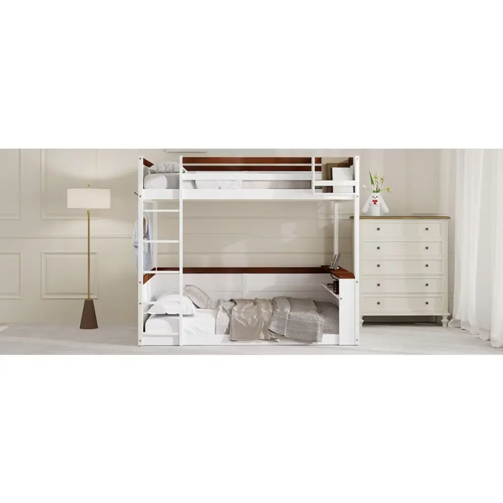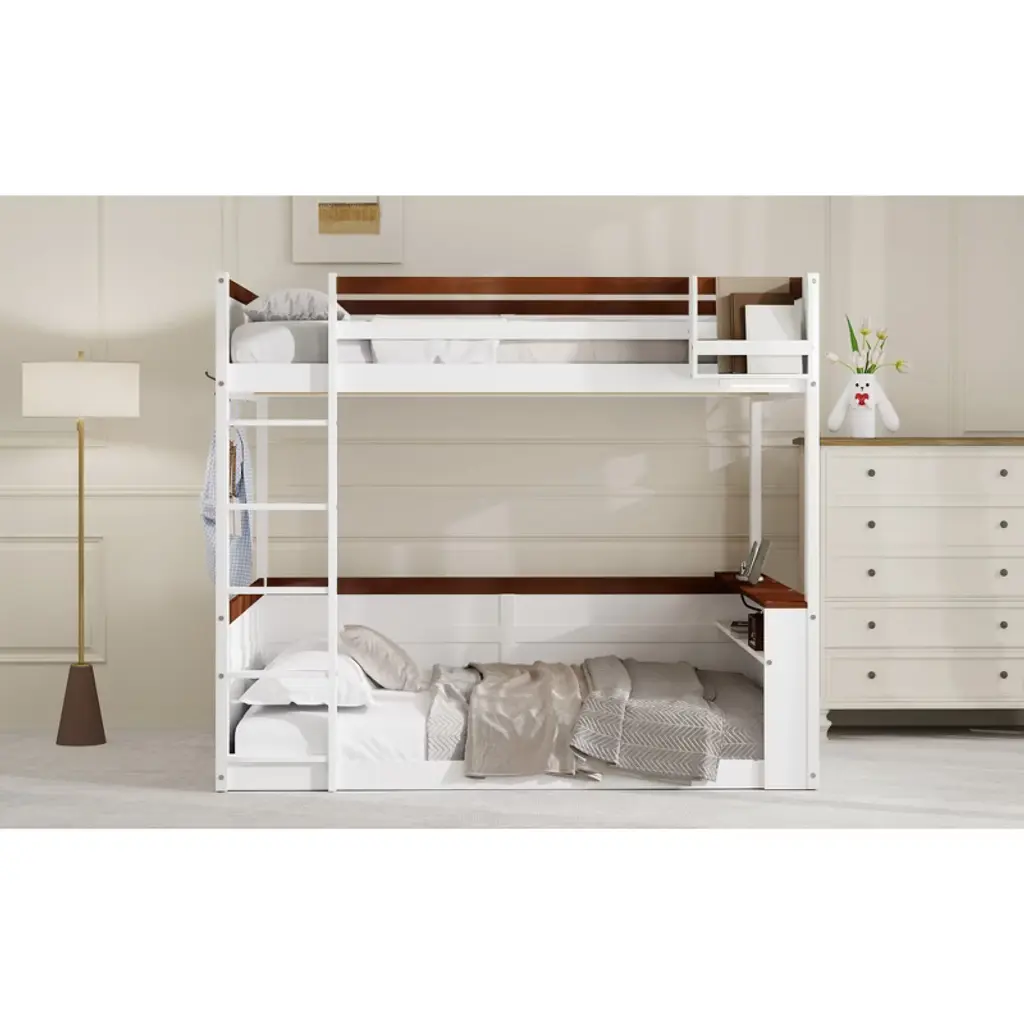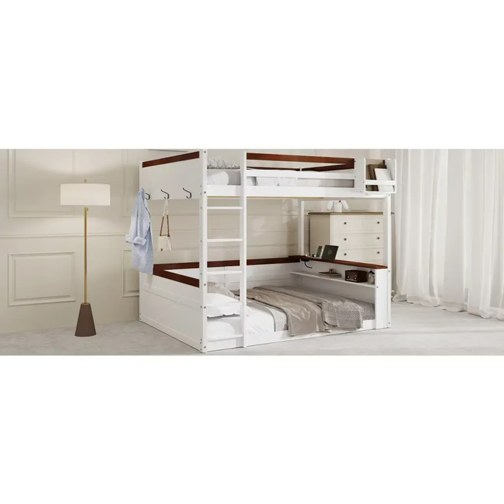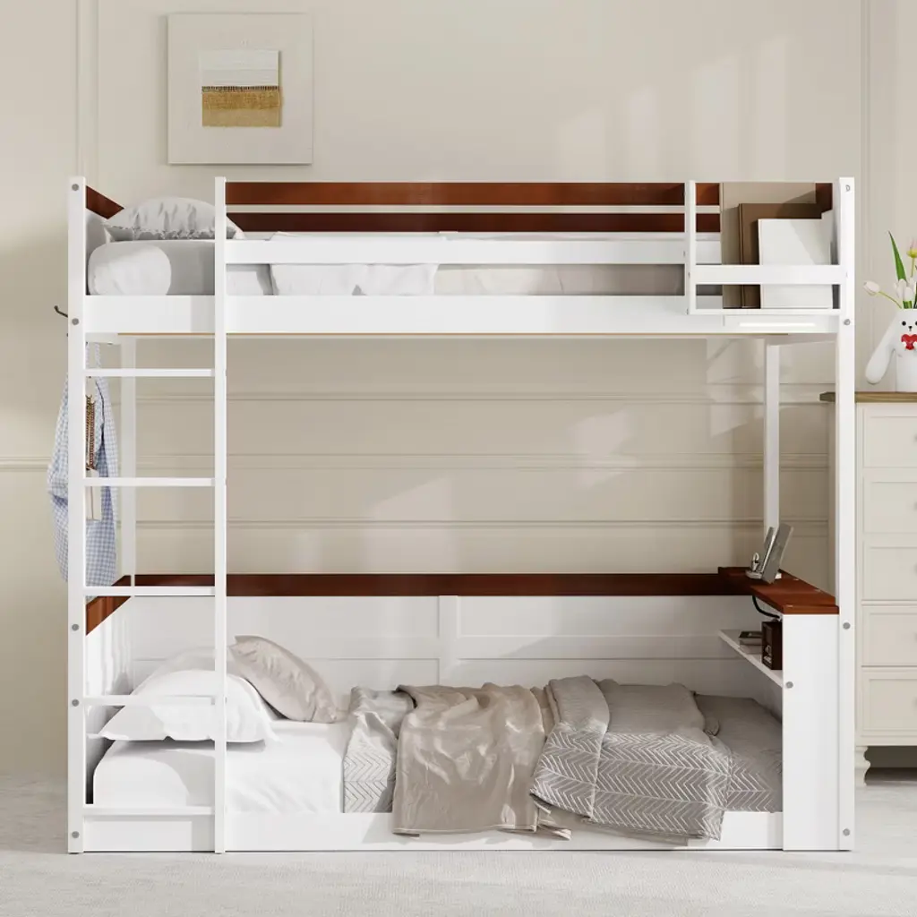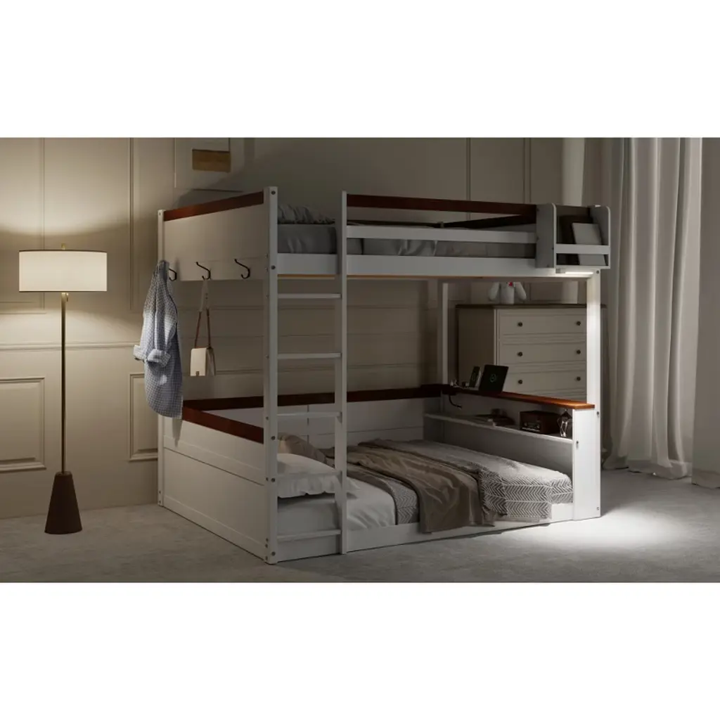 Queen Size Wooden Bunk Bed With Built-in Shelves And Usb Charging Station