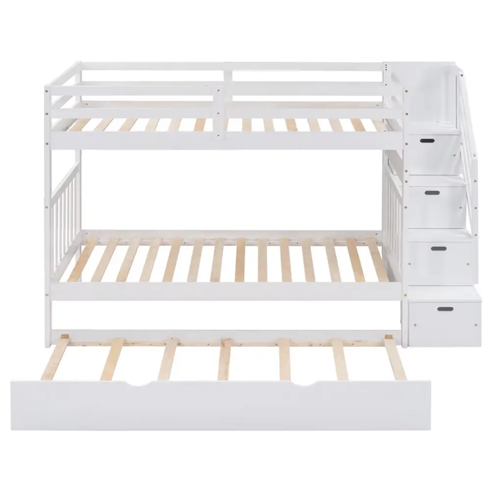 Sapphtopaz Wood Twin Over Full Bunk Bed With Twin Size Trundle,bunk Bed Frame With Drawers&stairs,space-saving Versatility Storage Bed For Teens,white