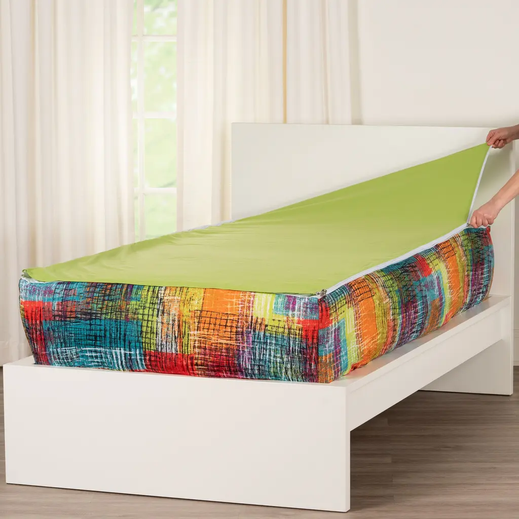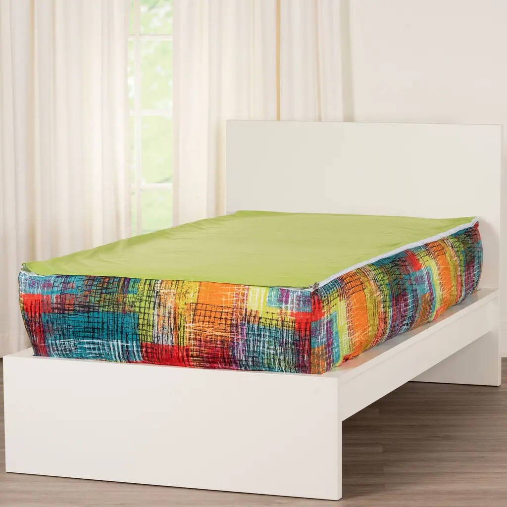 Update your child's bed with the On The Mark Bunkie Deluxe from Siscovers! This all-in-one zipper bedding set has everything you need to send your little ones off to dreamland. The removable snuggly comforter is a perfect medium weight for all seasons. The zipper that runs along the perimeter of the bed makes it so easy to make the bed, leaving it neat and tidy in a flash. The Bunkie Deluxe goes on easy just like a fitted sheet. It easily fits over your mattress with a heavy-duty elastic that goes all the way around the bottom Bunkie. The detachable comforter and bottom sheet easily zip on and off, making laundry a breeze. Under the removable comforter and sheet, you will find a built-in mattress protector that protects the top of the mattress from any spills or accidents. Also included, you will find matching pillowcases to complete the look. These envelope style cases keep your pillows tucked away safely inside. This revolutionary product not only has everything you need in one easy package; It looks great, is fun to use, and is available in both Twin and Full sizes! This product looks great on bunk beds, panel beds, and platform beds, too! Dimensions: Twin-size Bunkie Deluxe (39" x 75"x 16"), Includes 2 standard pillow cases (26" x 20") Full-size Bunkie Deluxe (54" x 75" x 16"), Includes 4 standard pillow cases (26" x 20")