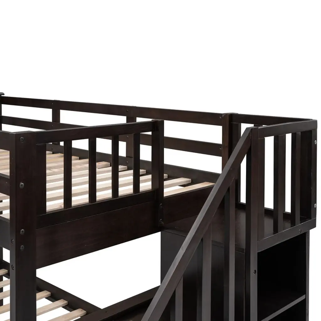 Stairway Twin-over-full Bunk Bed With Drawer, Storage And Guard Rail For Bedroom, Dorm, For Adults, Espresso Color