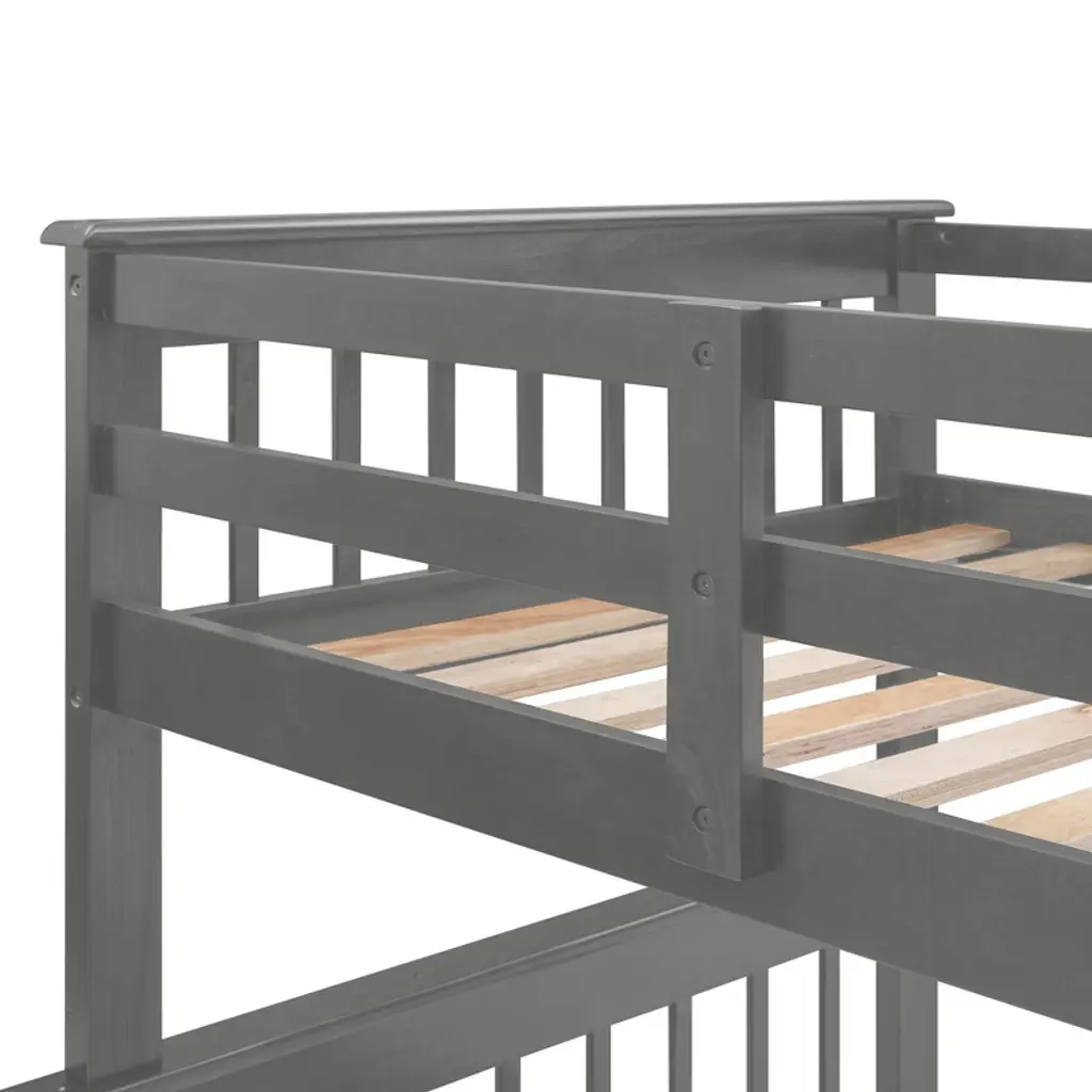 Stairway Twin-over-full Bunk Bed With Drawer, Storage And Guard Rail For Bedroom, Dorm, For Adults, Gray Color
