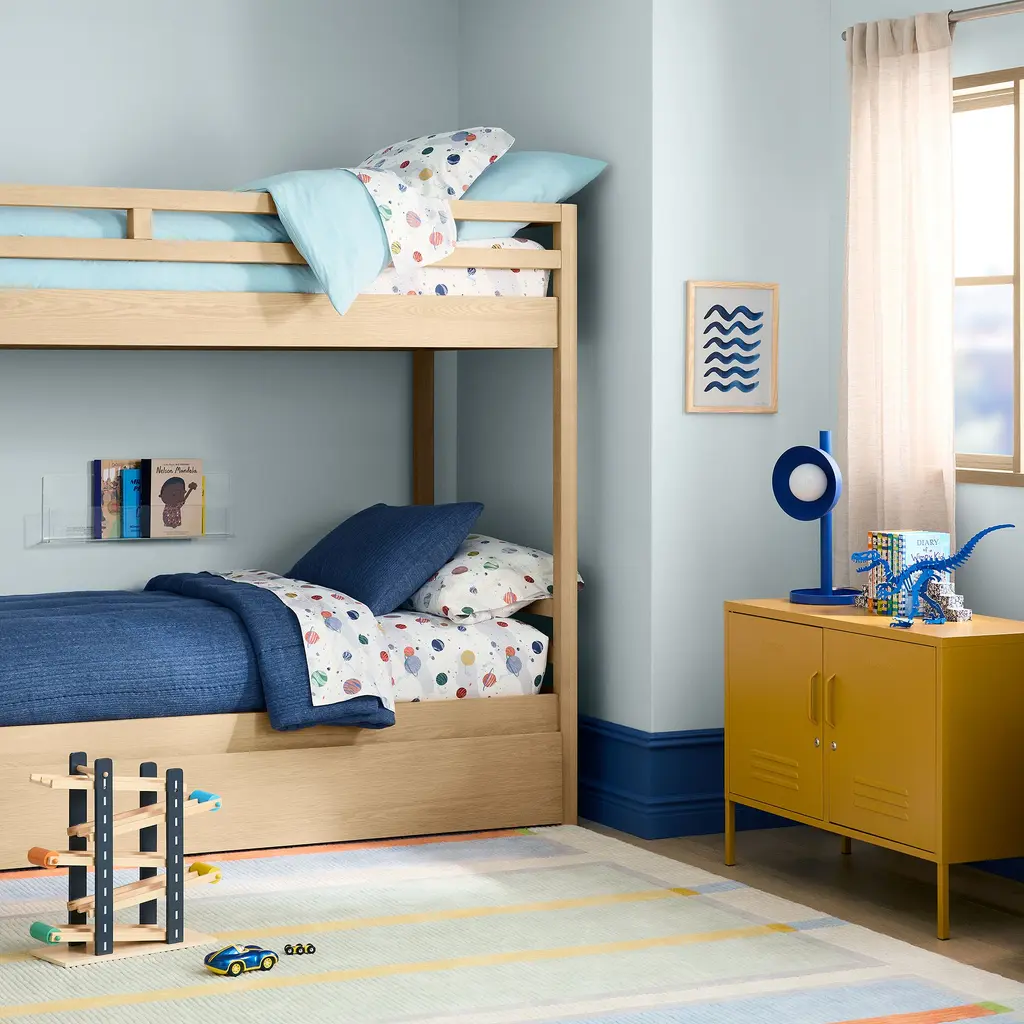 Extra durable with a kiln-dried wood frame. Bunk beds maximize your floorspace. Crafted from solid, sustainably sourced wood.
