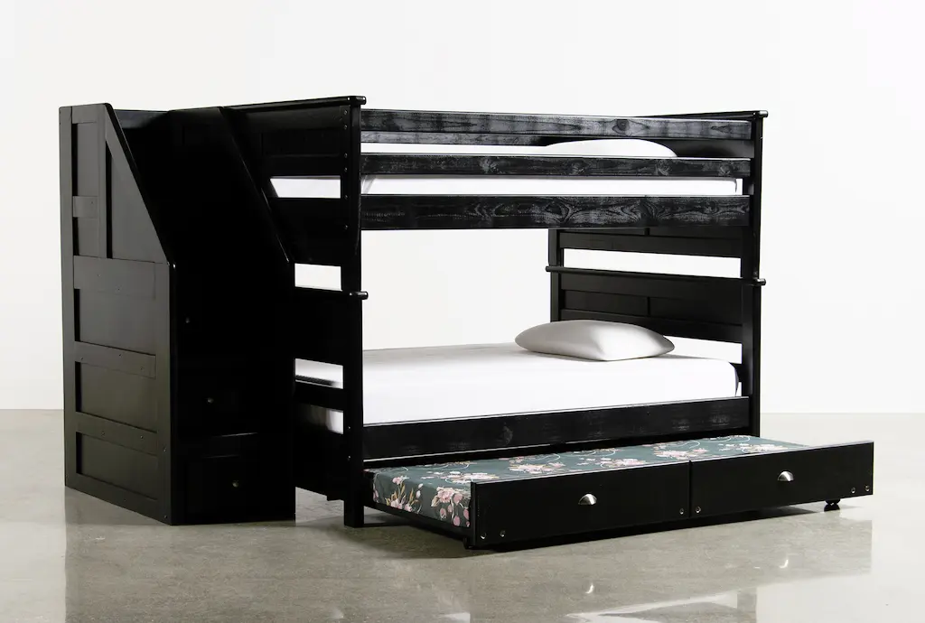 Summit Black Full Over Full Wood Bunk Bed With Twin Trundle/mattress & Stairway Chest