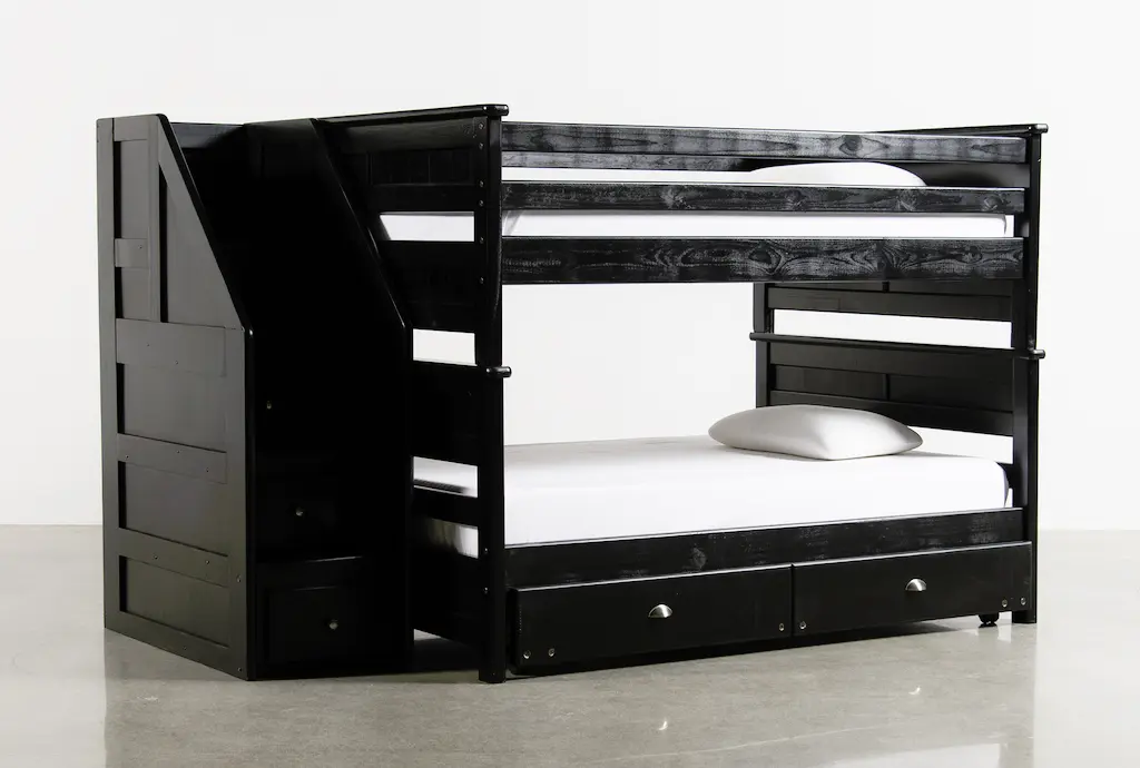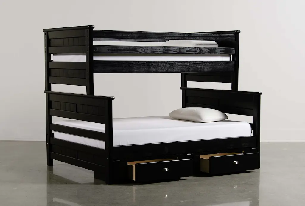 Summit Black Twin Over Full Wood Bunk Bed With 2-Drawer Underbed Storage