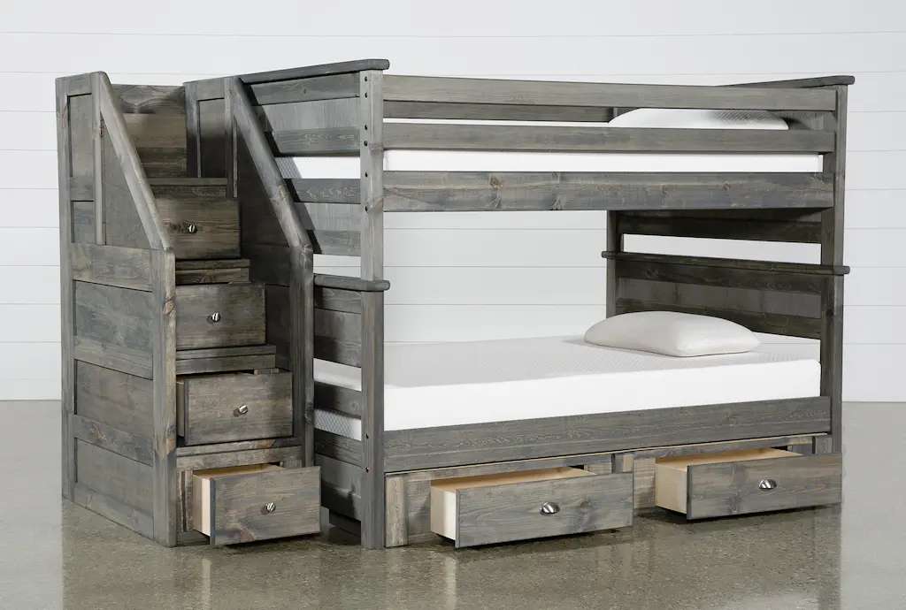 Summit Grey Full Over Full Wood Bunk With 2-Drw Underbed Storage & Stairway