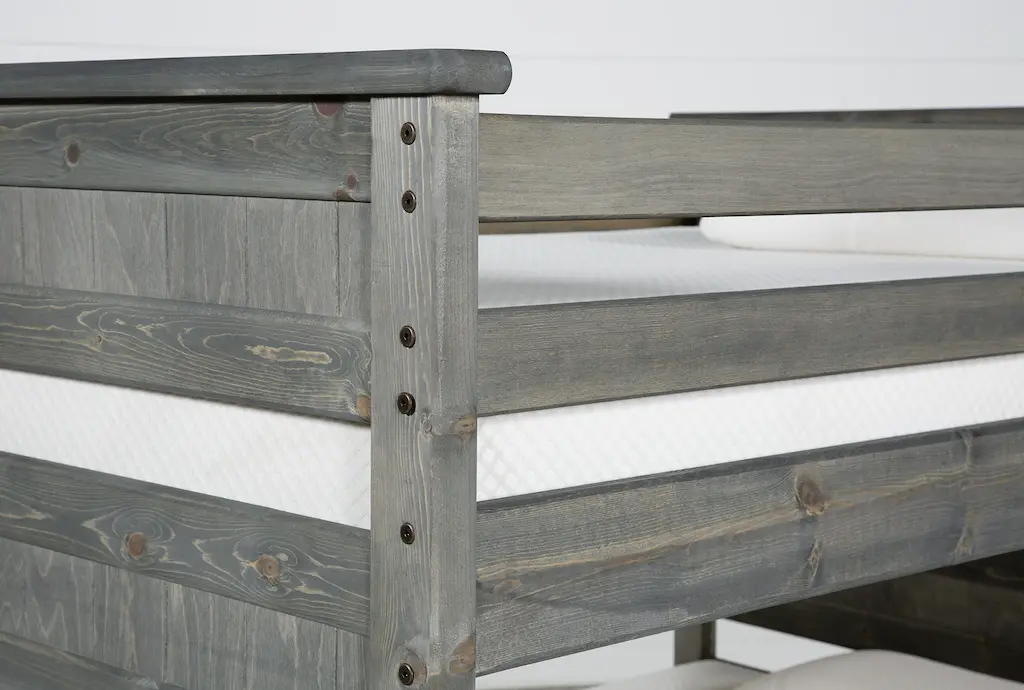 Our Summit Grey collection is filled with pieces that will help create a warm and welcoming environment for your child. Crafted with solid pine and pine veneer, the natural beauty and durability of the wood shines through in these designs, which are decked in a handsome rustic grey finish. From beds that will inspire kids to sleep soundly, to storage items that keep clothes, toys and essentials organized, there’s something for every little dreamer.