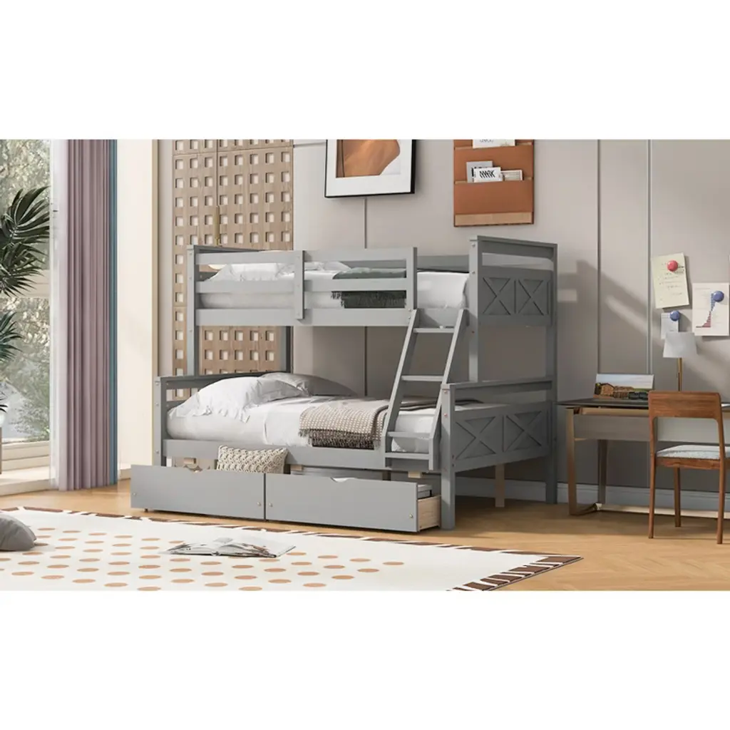 Twin Over Full Bunk Bed With Ladder And Two Storage Drawers