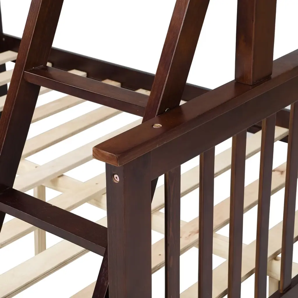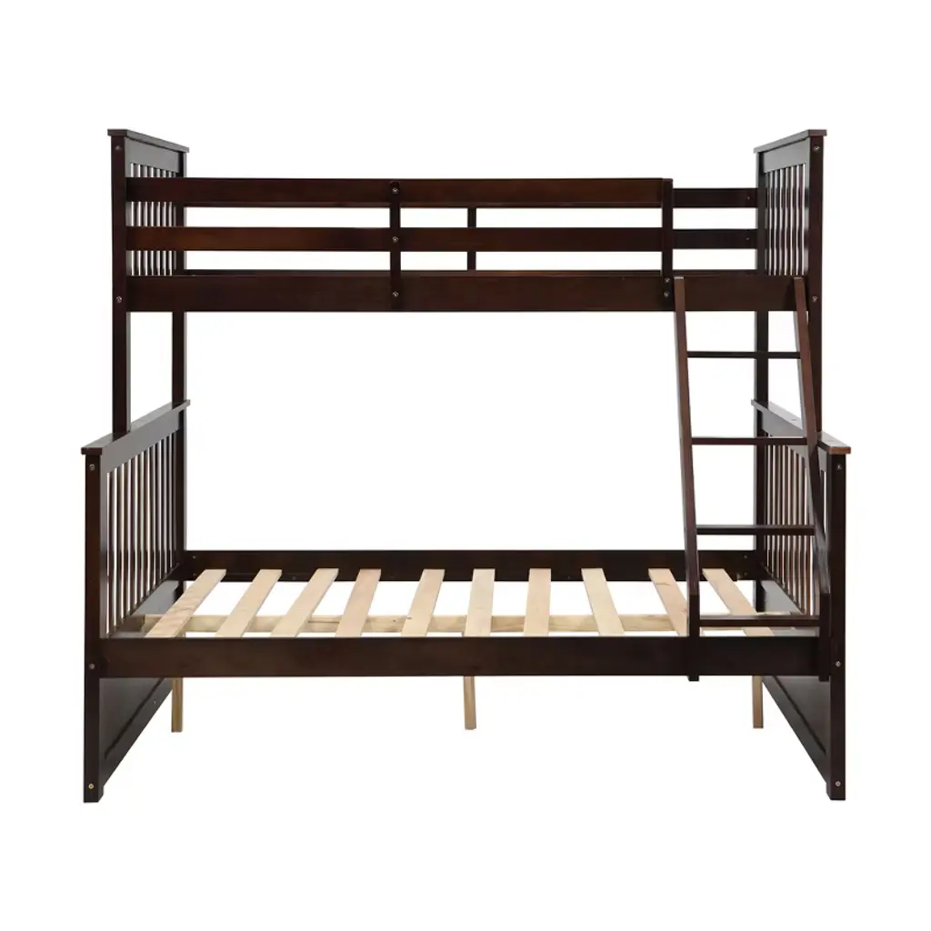 Product Features [Versatility galore] This bunk bed features one twin size upper bed and one full size bottom bed for accommodating your family or any overnight sleepers. It can also be divided into two individual beds for even more convenience, depending on how you want to organize your space. No spring box needed.[Bunk Bed with Drawers] This bunk bed is the ultimate space-saving solution for accommodating spontaneous sleepovers or maximizing room space. What sets it apart are the two drawers cleverly tucked beneath, offering convenient storage for clothes and bedtime essentials.[Solid Construction] The bed structure is crafted from high-quality solid pine wood and a strong, durable frame so that the bed is sturdy and durable.[Top-Notch Safety Features] Safety is paramount, especially for families. The upper bunk is thoughtfully designed with a full-length guardrail to prevent any accidents during the night. The bottom bunk is equipped with both a headboard and footboard for added security. A sturdy handrail adds an extra layer of safety to the top bunk.[ Easy Assembly and Versatile Use] While assembly is required, the included instructions guide you through the process.