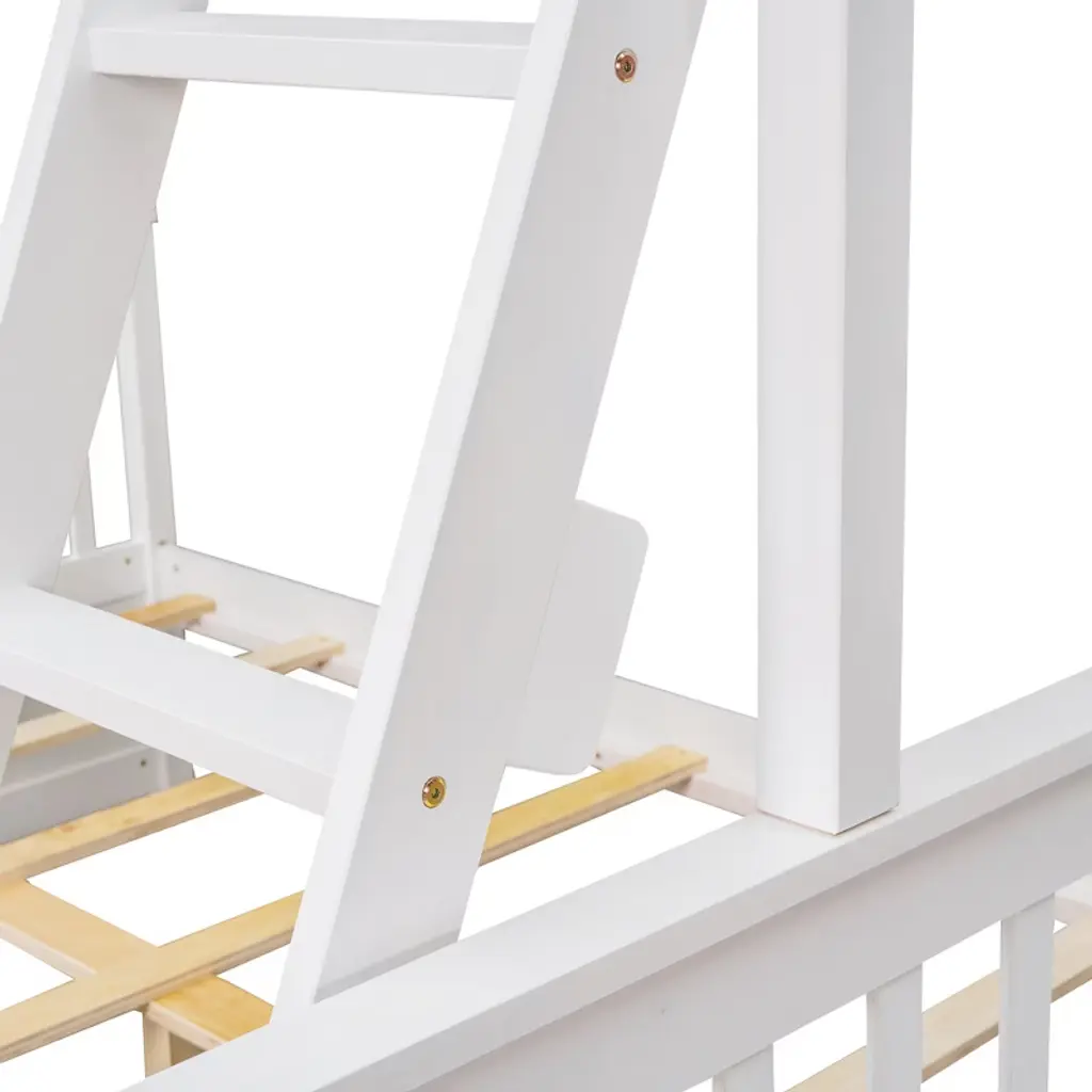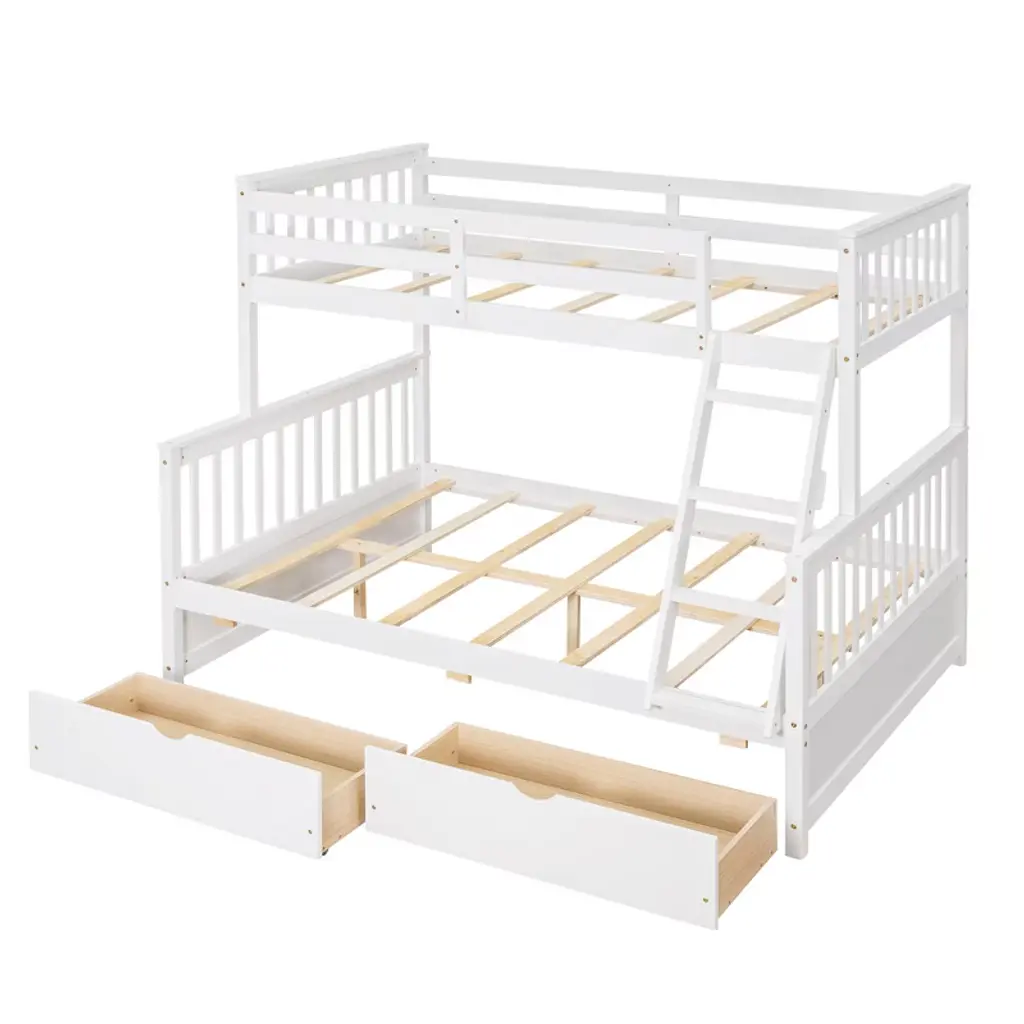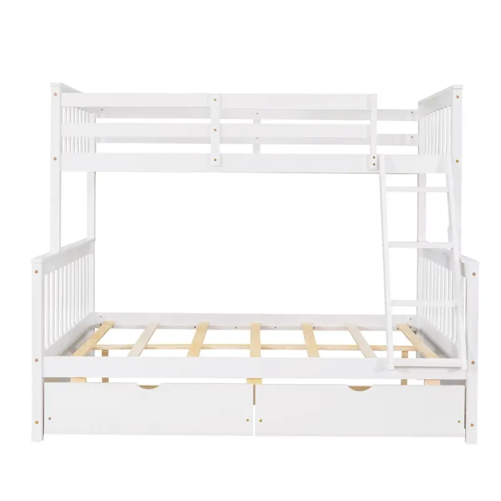 Twin Over Full Bunk Bed With Storage Drawers, Solid Pine Wood Frame And Ladder With Guard Rails For Kids Teens, White