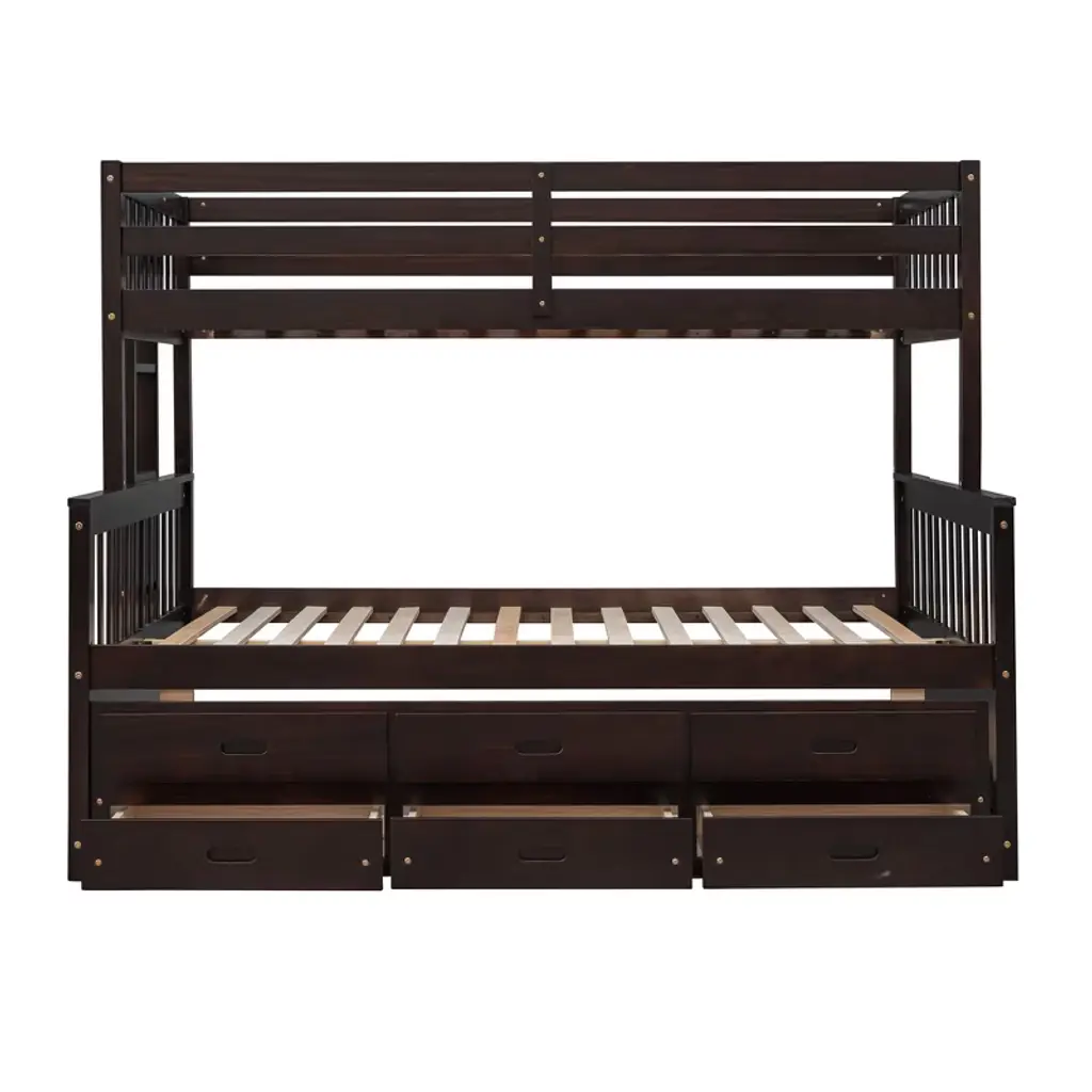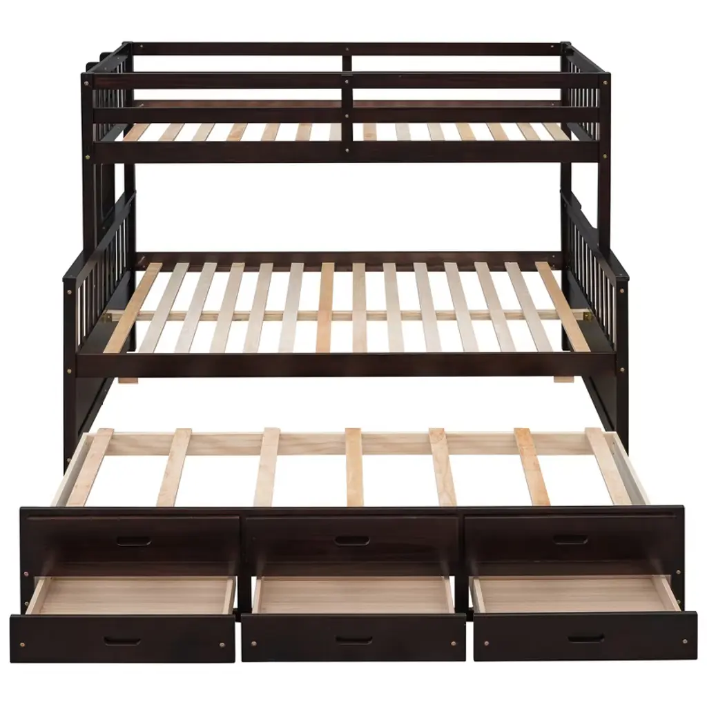 Twin Over Full Bunk Bed With Trundle And Drawers, Wood Separable Bunk Bed For Kid, Espresso