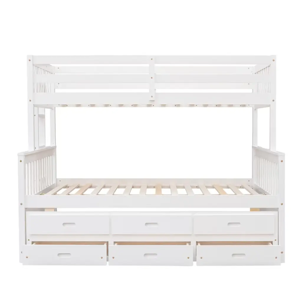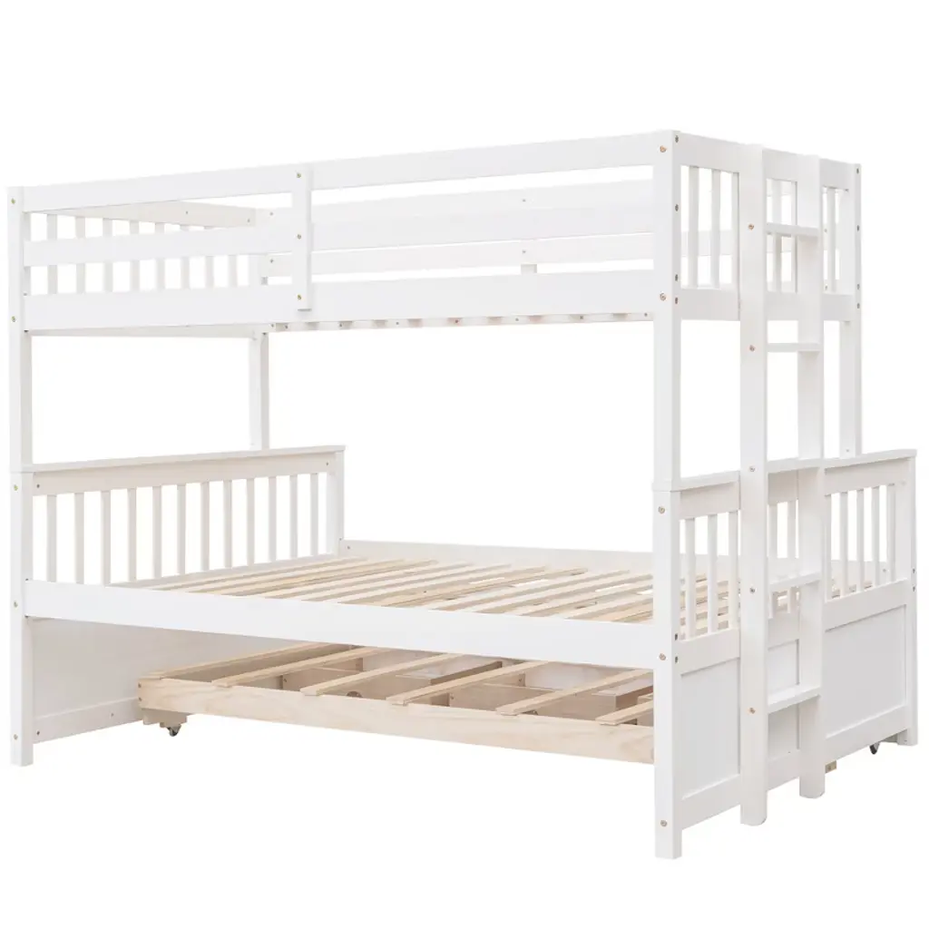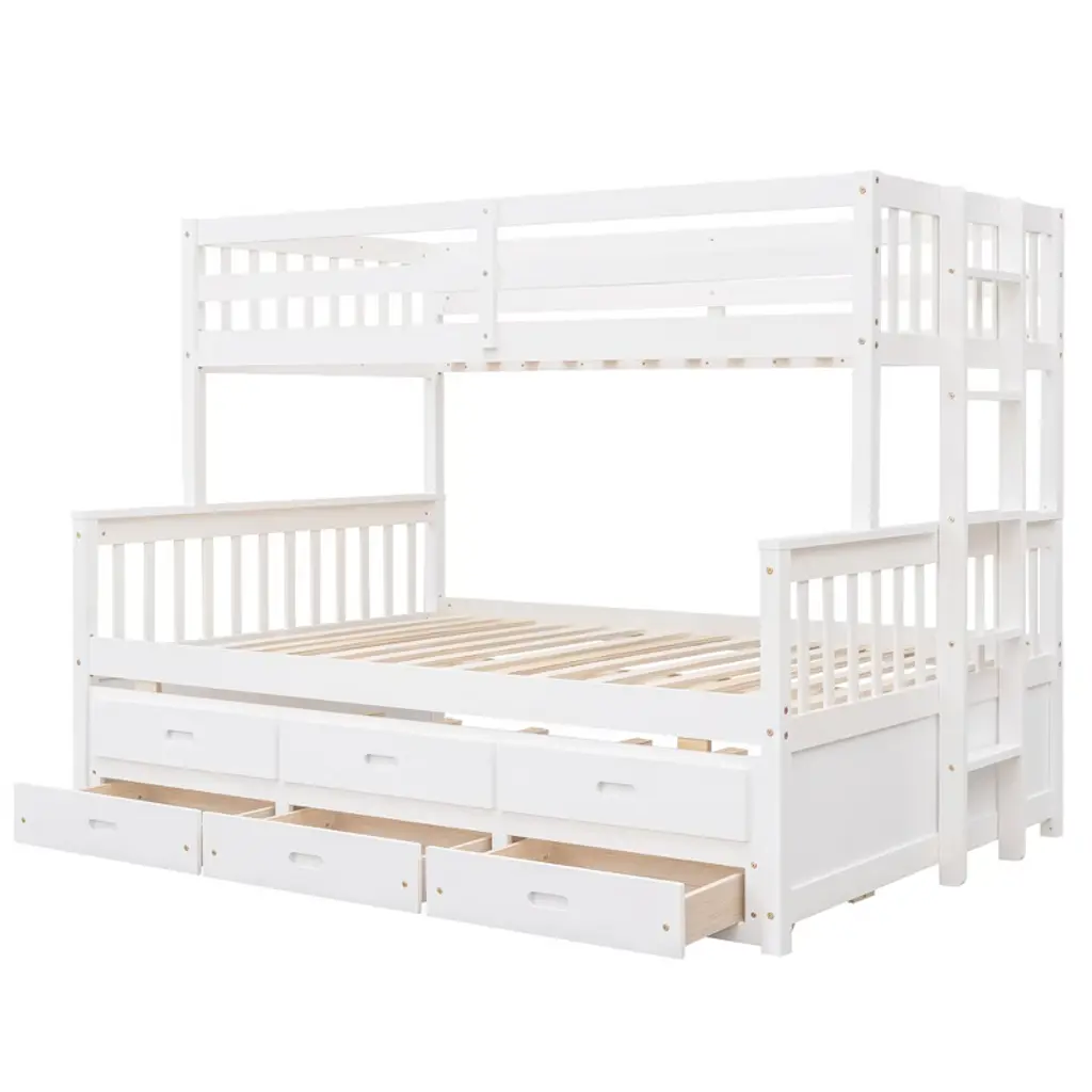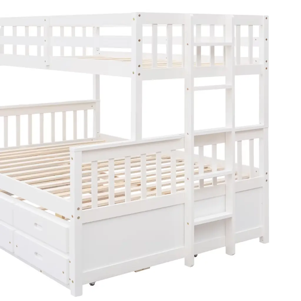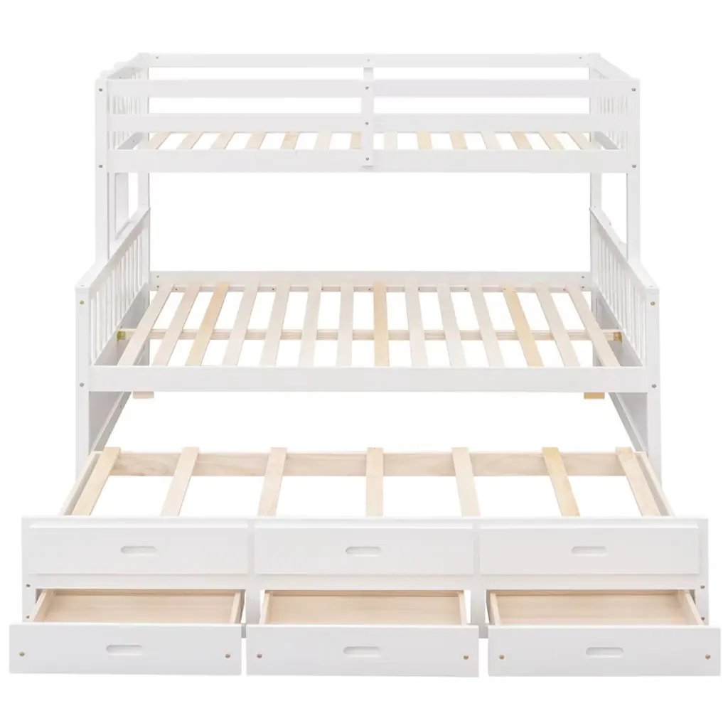 Twin Over Full Bunk Bed With Trundle And Drawers, Wood Separable Bunk Bed For Kid, White