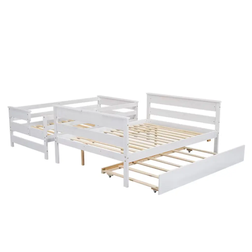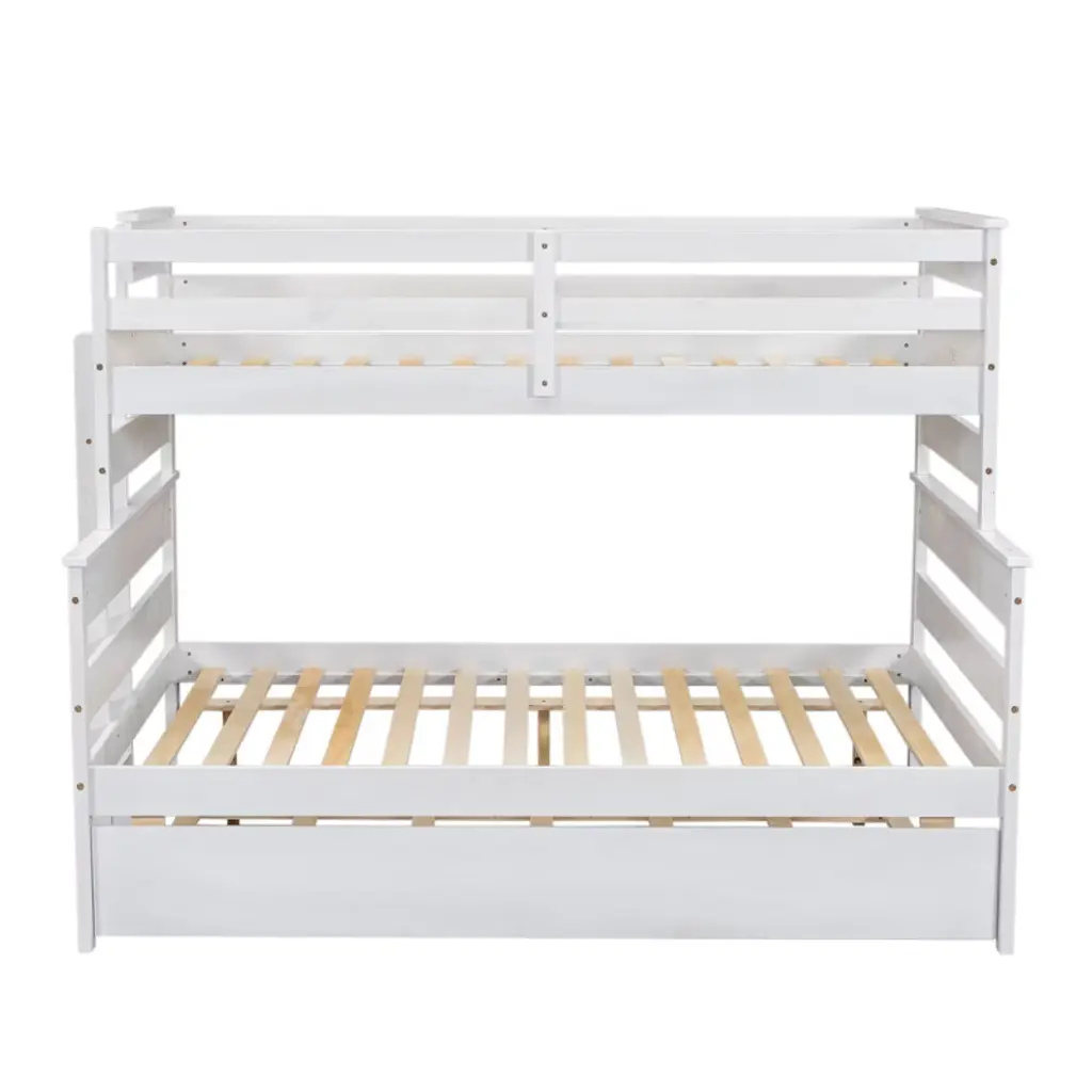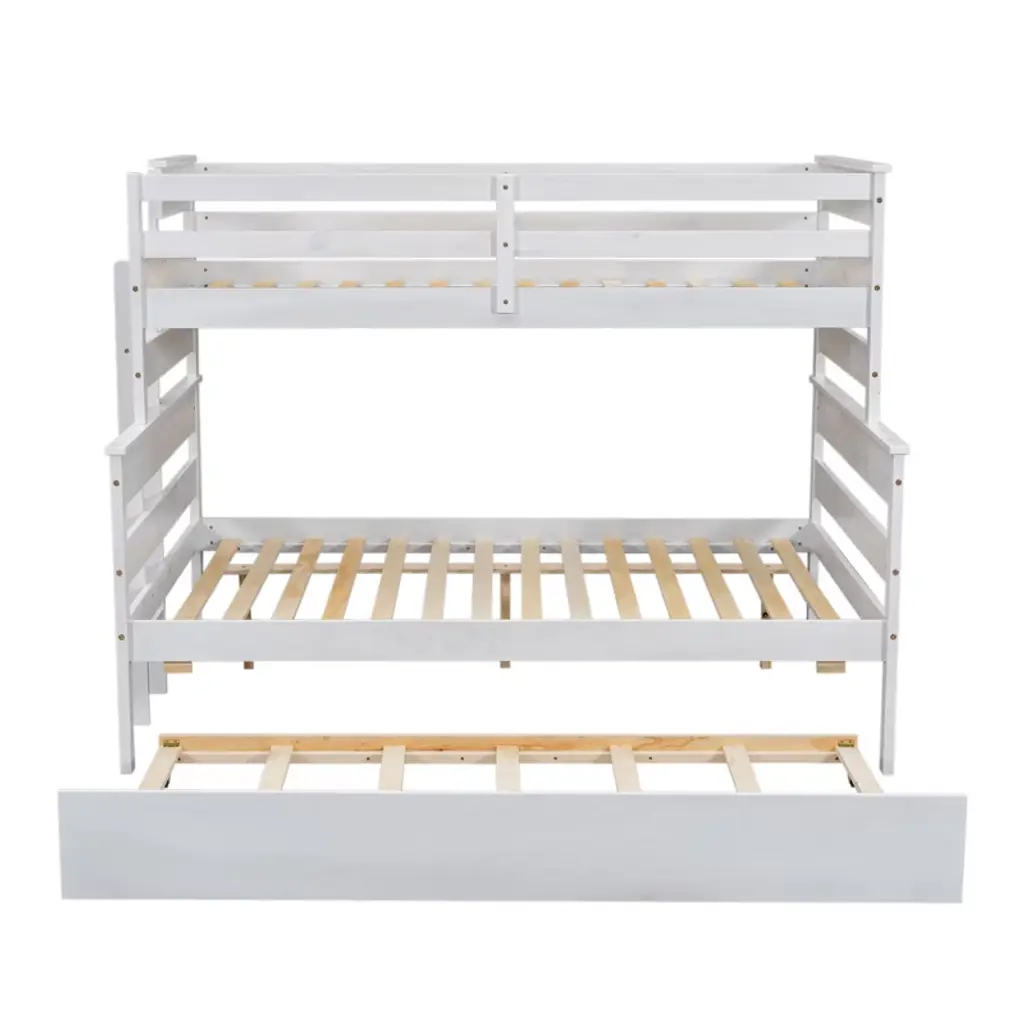 Twin Over Full Bunk Bed With Trundle, Wood Bunk Bed Frame With Ladder And Safety Guardrail, White