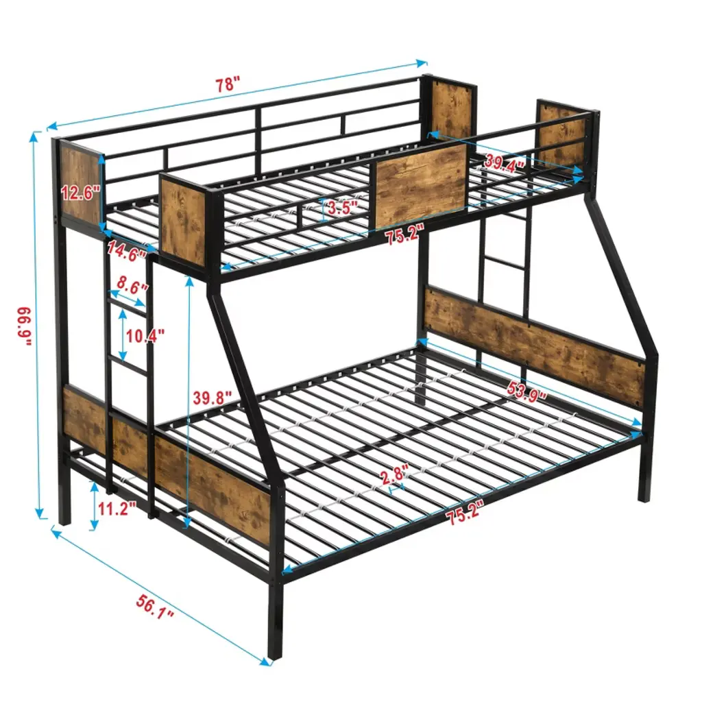 Twin Over Full Metal Bunk Bed With 2 - Side Ladder And Full-length Guardrail