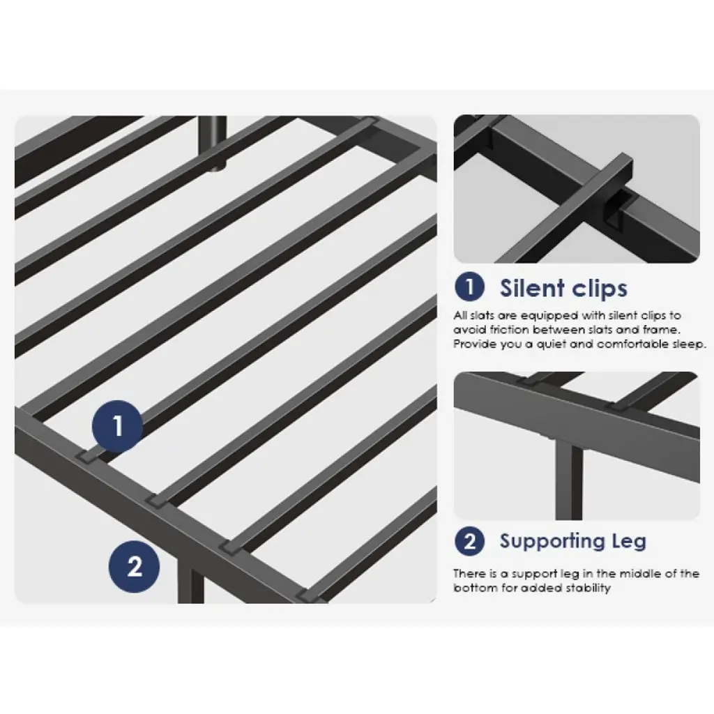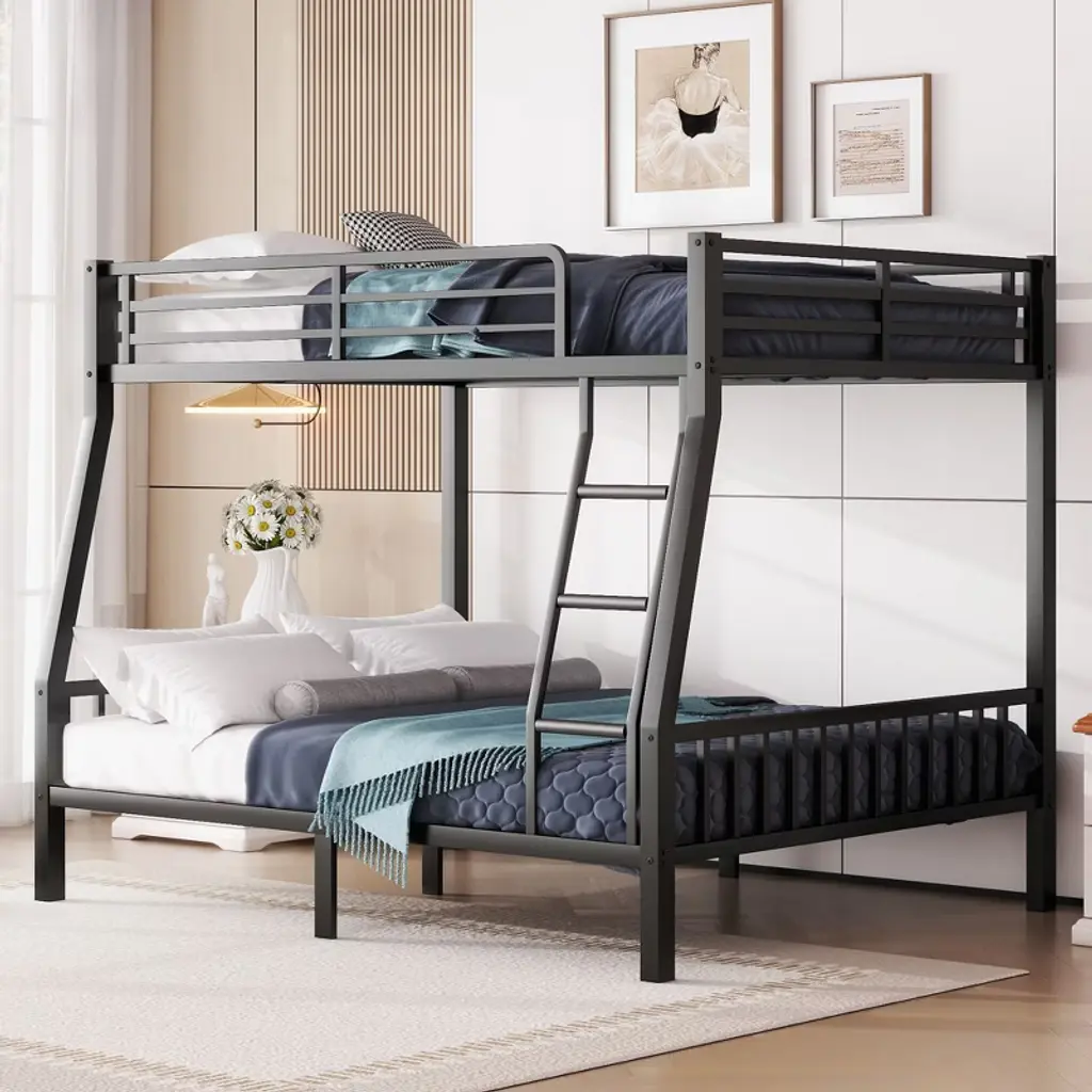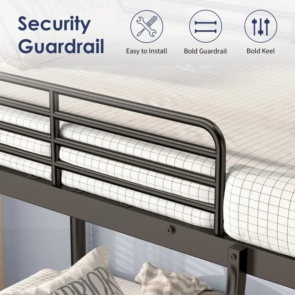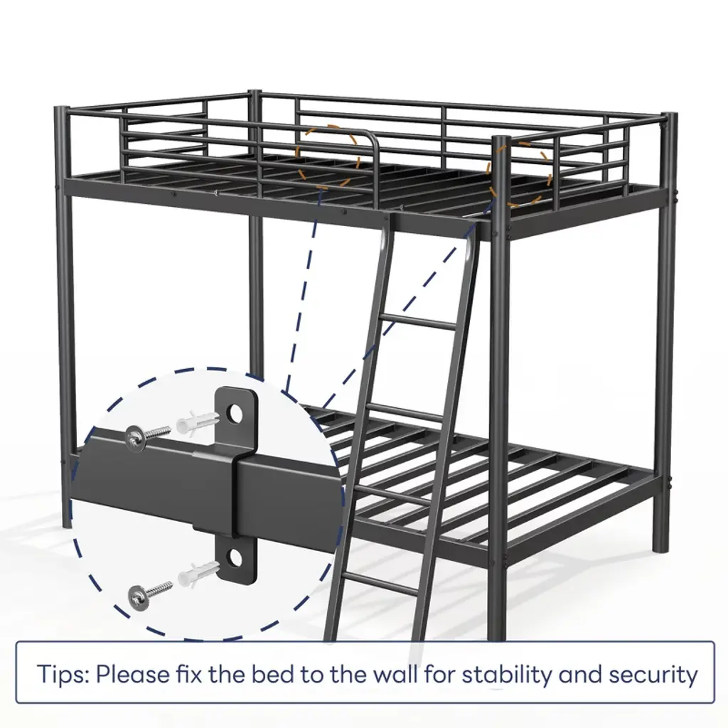 Product Features Accompany Your Child: If your child is too young to sleep alone, our twin over full bunk beds will be a great choice. You can sleep on the bottom bunk so that you can take care of your child at any time. Of course, if you have two children, it is also a very good choice.Stable Construction: The sturdy metal construction creates a stable platform bunk bed to withstand daily use by children large or small. Premium powder coated metal surfaces provide a smooth and longer lasting finish, preventing corrosion and rust.No Box Spring Required: Heavy metal slats support your mattress without the need for a box spring. Fixed slats and raised sides hold the mattress in place, preventing it from sliding. Suitable for 1 twin and 1 full mattress (sold separately).Stable Construction: The sturdy metal construction creates a stable platform bunk bed to withstand daily use by children large or small. Premium powder coated metal surfaces provide a smooth and longer lasting finish, preventing corrosion and rust.