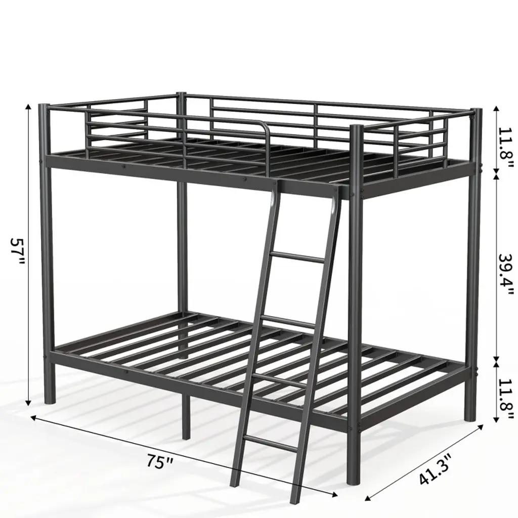 Twin Over Twin Bunk Bed With Ladder And Guardrails