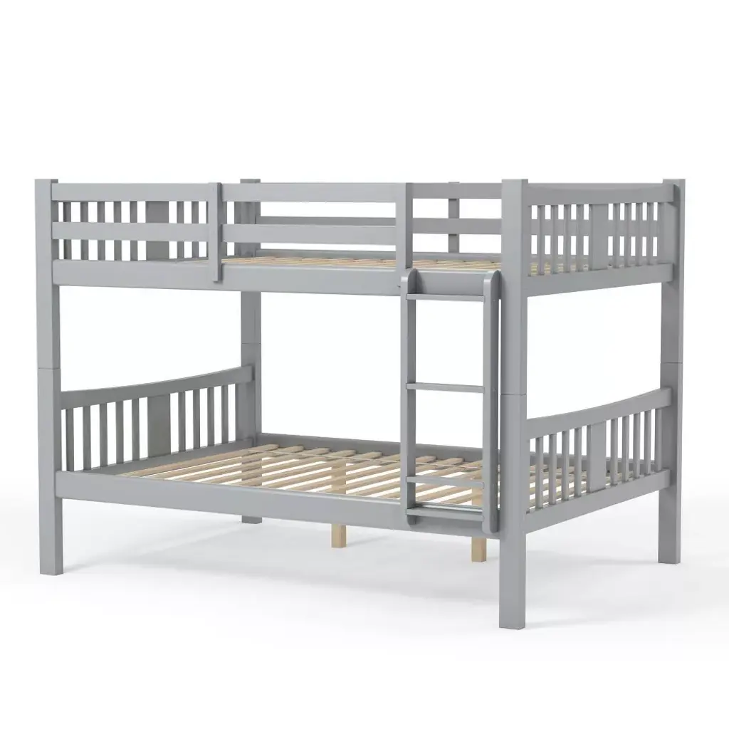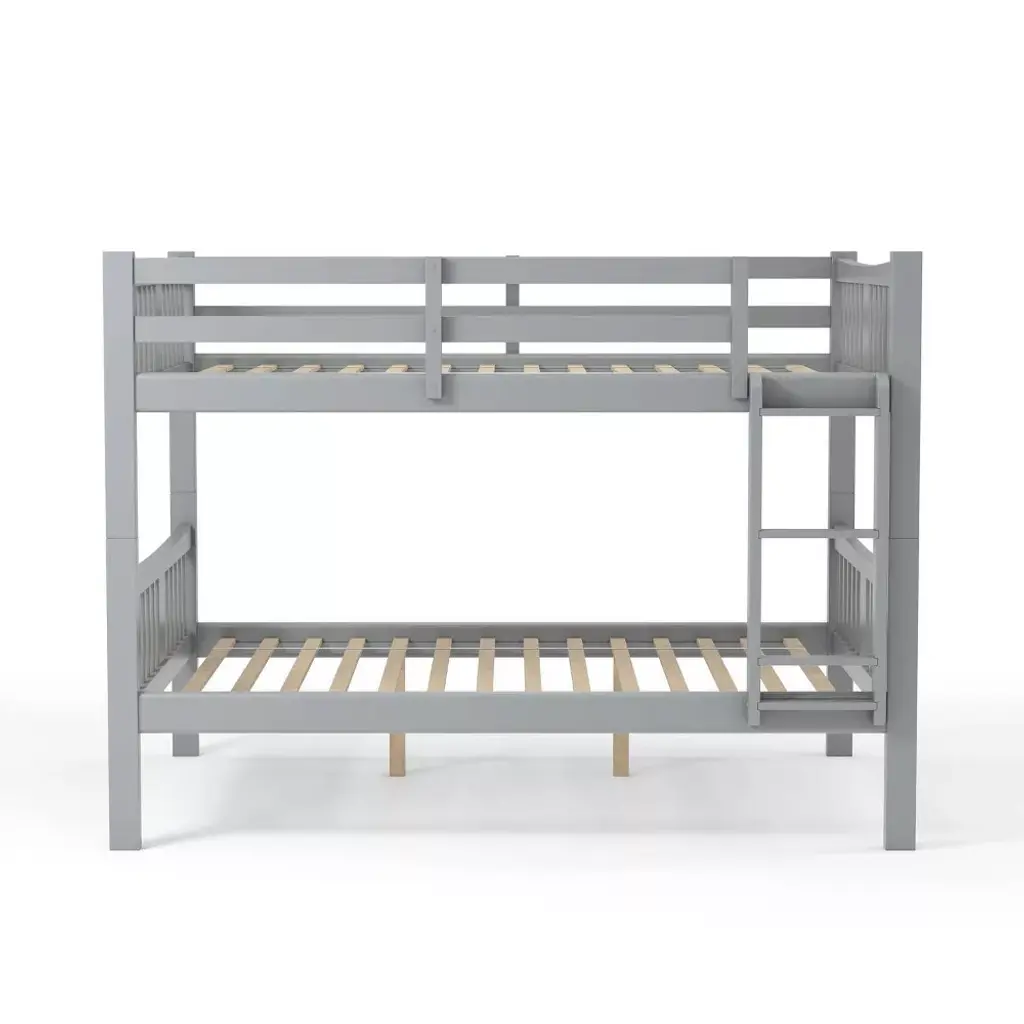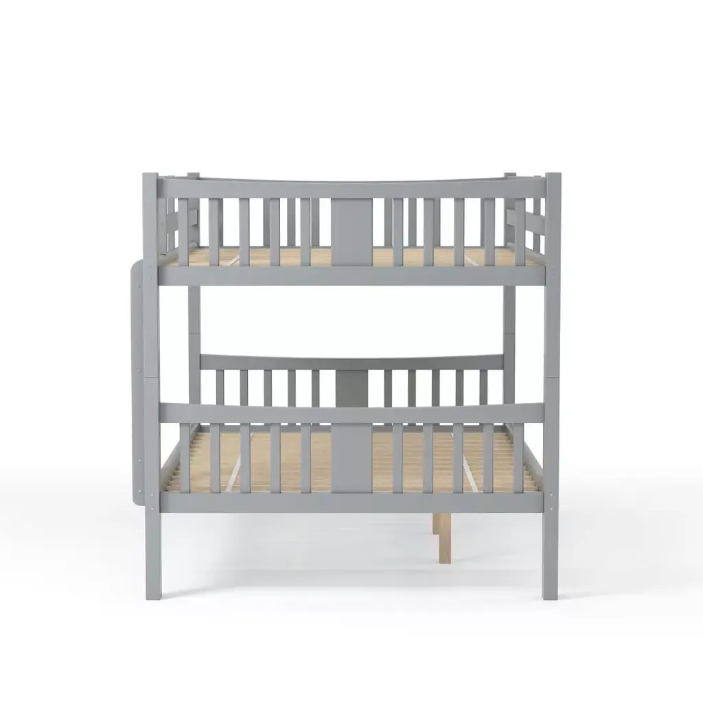 Twin Over Twin Kids' Clare Bunk Bed Gray - Iohomes: Built-in Guard Rails & Ladder, Wood Veneer, Transitional Style