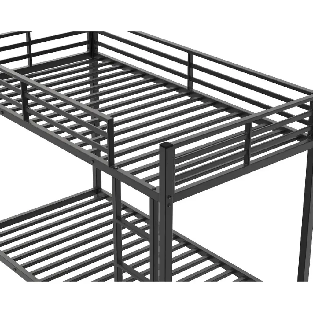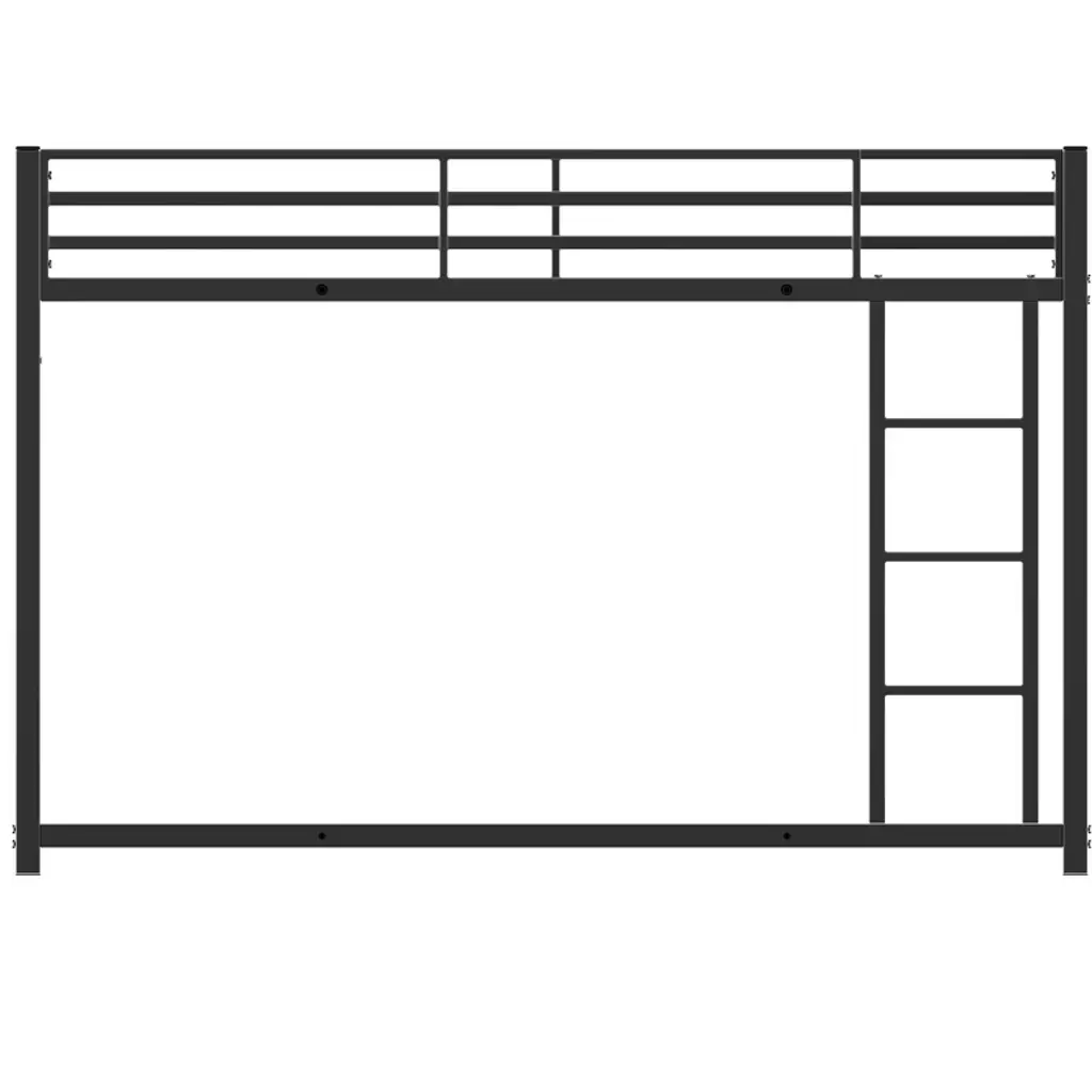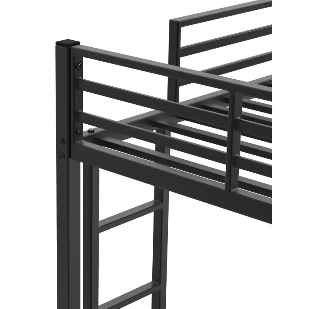 Bring function and style to shared bedrooms with this Twin Over Twin Metal Bunk Bed. Featuring a low-profile design for safety and accessibility, this sturdy steel frame offers lasting durability and a sleek black finish that complements any décor. Ideal for kids, teens, or guest rooms, it provides comfortable sleeping space without sacrificing floor area. Specifications King Size Dimension: 77.1"W*40.9"D*53.7"H Material: Iron Size: Twin Over Twin Number of Packages: 1 Maintenance & Notice About Finish: Liquids should be immediately blotted with a damp cloth. Do not use surface cleaners that could remove the finish. About Hardware: Hardware may loosen over time; periodically check to make sure all connections are tight. About Fasteners: Don't over-tighten fasteners, as this may cause distortion or breakage. About Color: Real Product's Color may be a little different from the image due to the lighting or monitor's display. About Size: Manual measurement has been used, there may be some reasonable error.