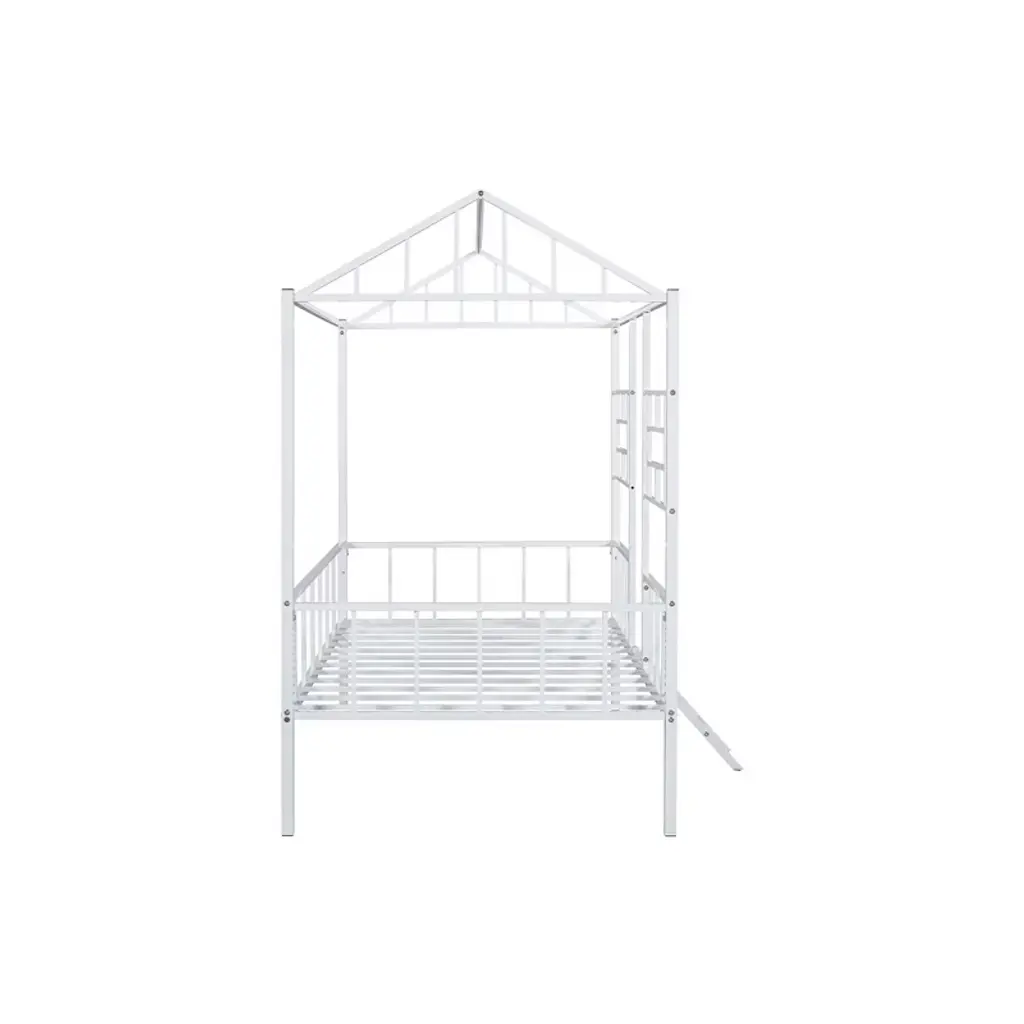 Product Features Contemporary StyleMetal, OthersFull Metal ConstructionAngled LadderHouse DesignGable Roof FrameMattress ReadyListing Include: 1pc Bunk Bed Only Product Dimension Bunk Bed: 41.5"W X 78"D X 64"H Product Description Contemporary Twin Loft Bed, is a modern bunk-style loft bed with a charming "house" or gable?roof design. Listing Include: 1pc Bunk Bed Only. MATTRESS: NOT INCLUDED. Simple Assembly Required.