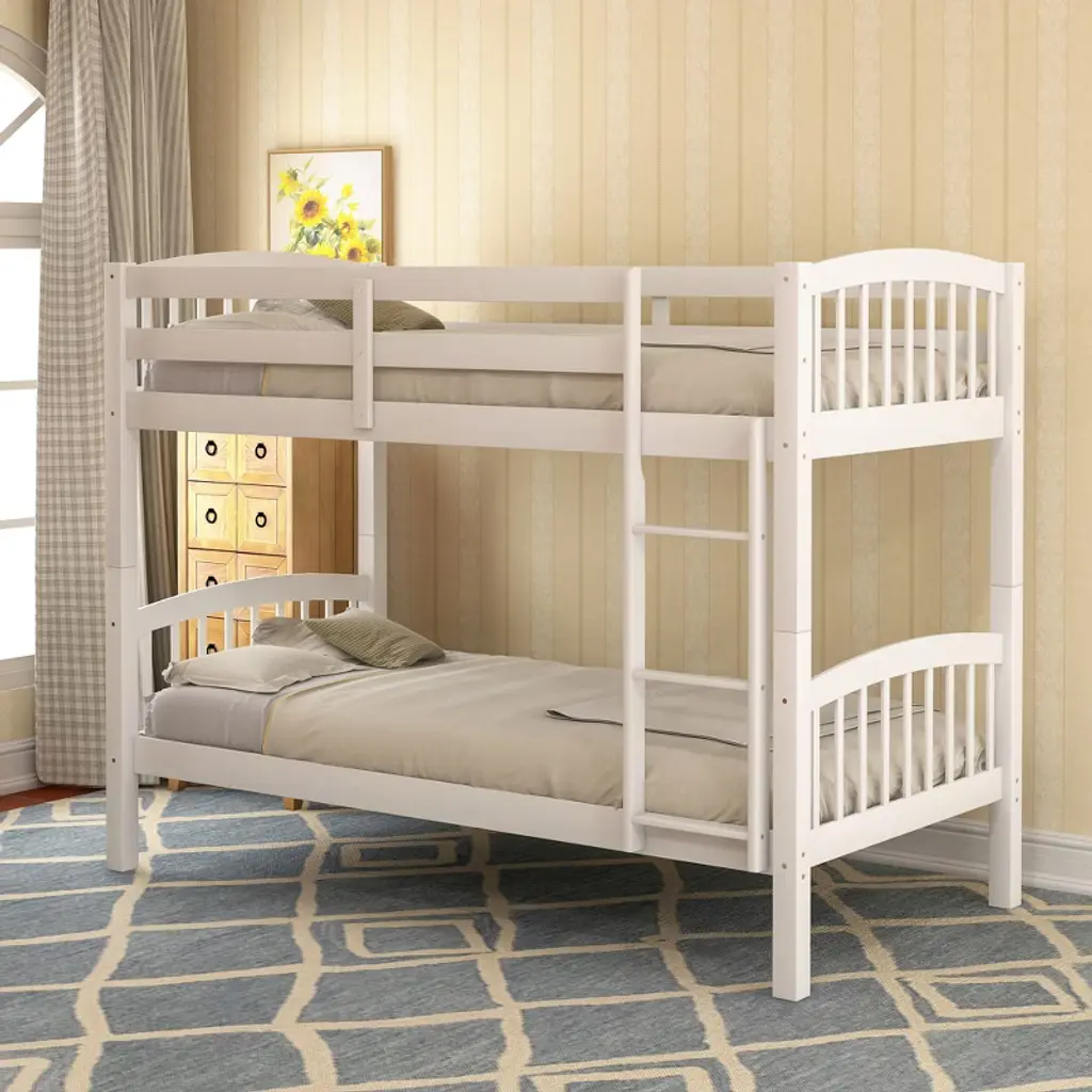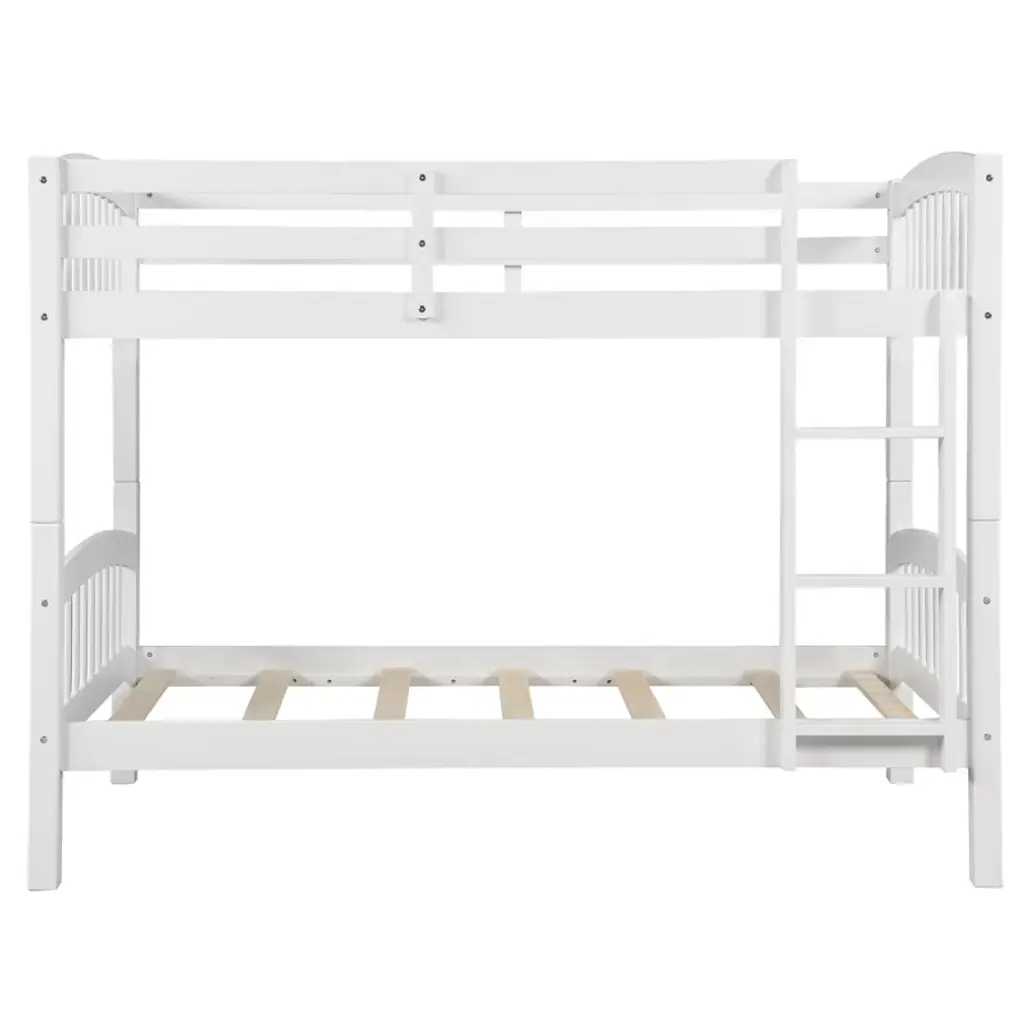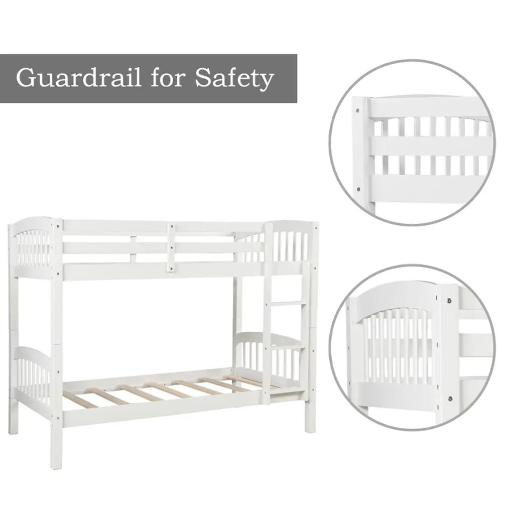 Wooden Twin Over Twin Bunk Beds Frame, Convertible Into Two Individual Solid Wood Beds, White