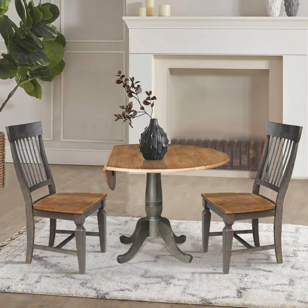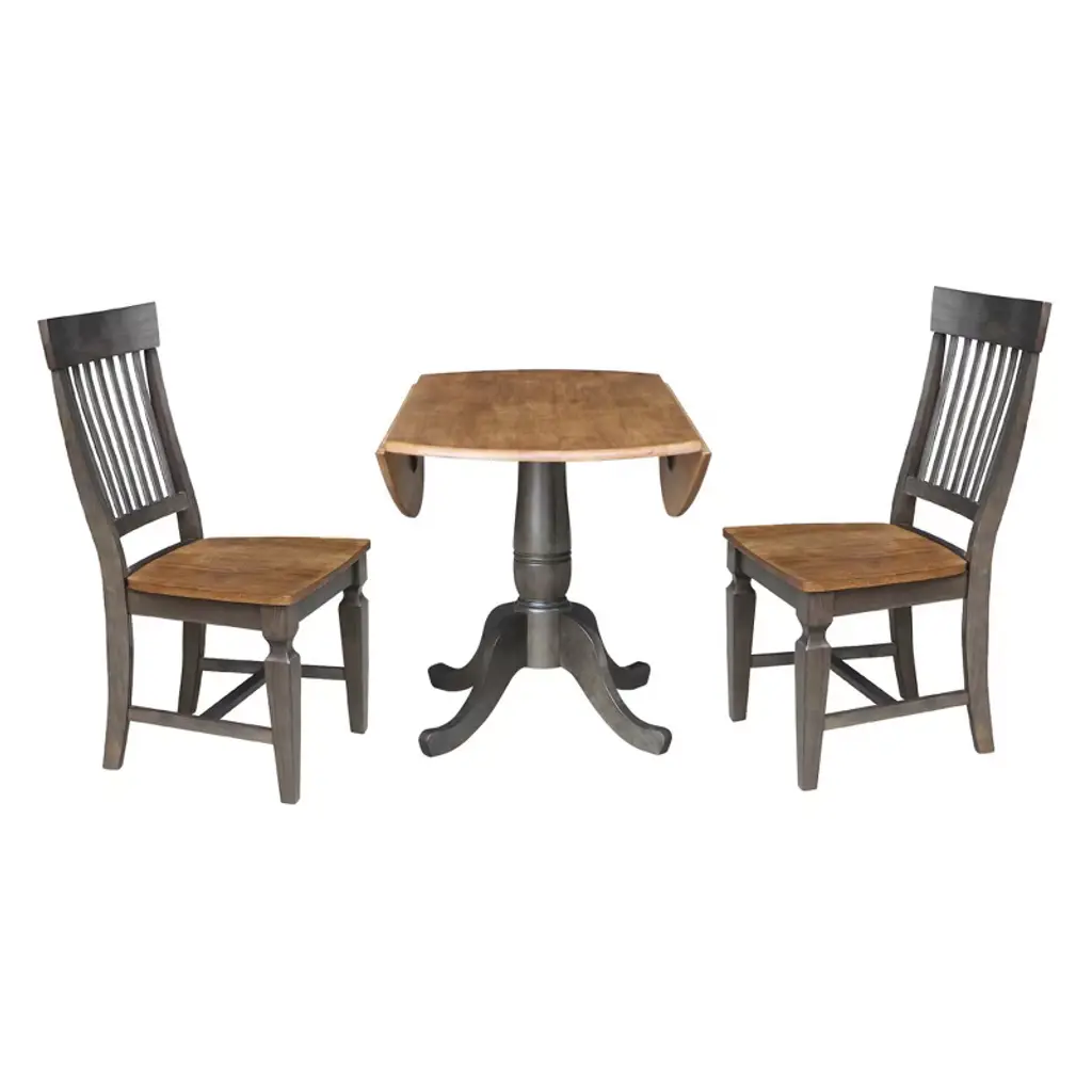 3Pc 42" Round Dual Drop Leaf Dining Table With 2 Slat Back Chairs Hickory/washed Coal - International Concepts: Compact Parawood Set