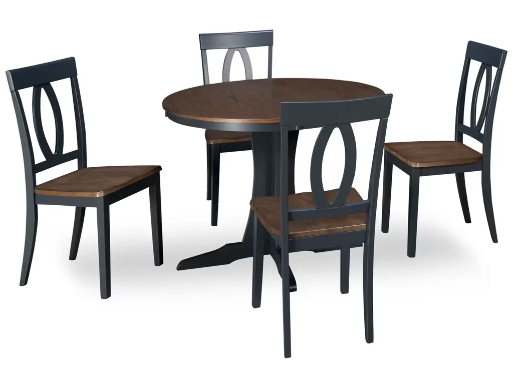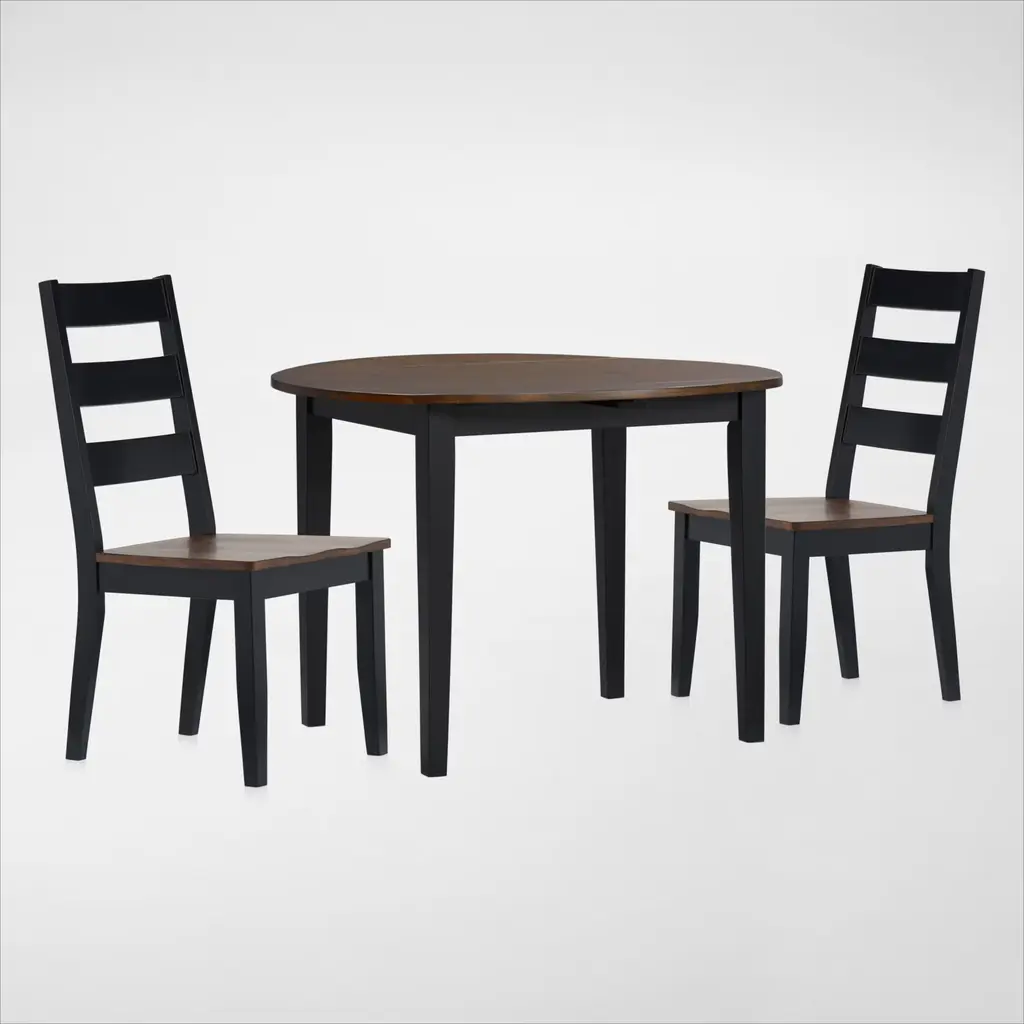 3Pc 42" Round Dual Drop Leaf Dining Table With 2 Slat Back Chairs Hickory/washed Coal - International Concepts: Compact Parawood Set