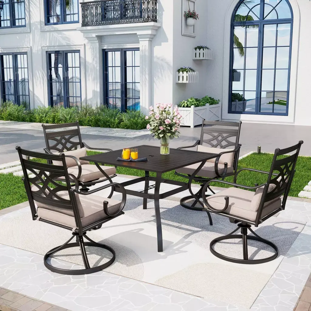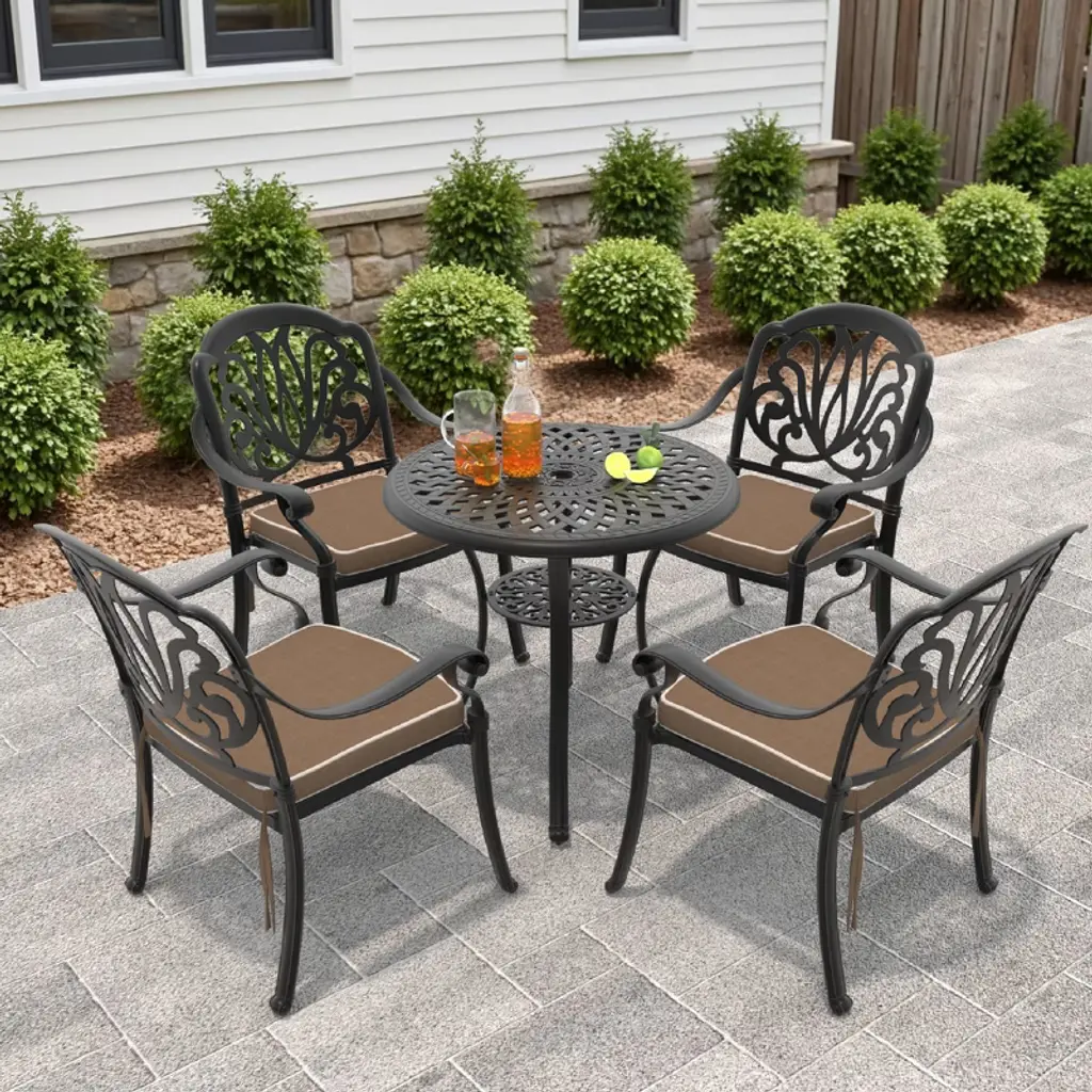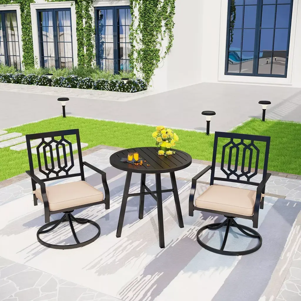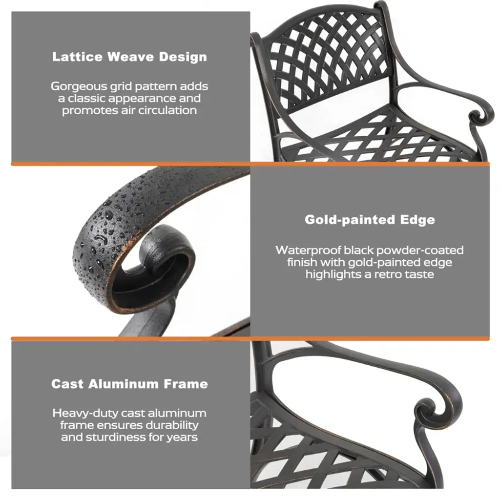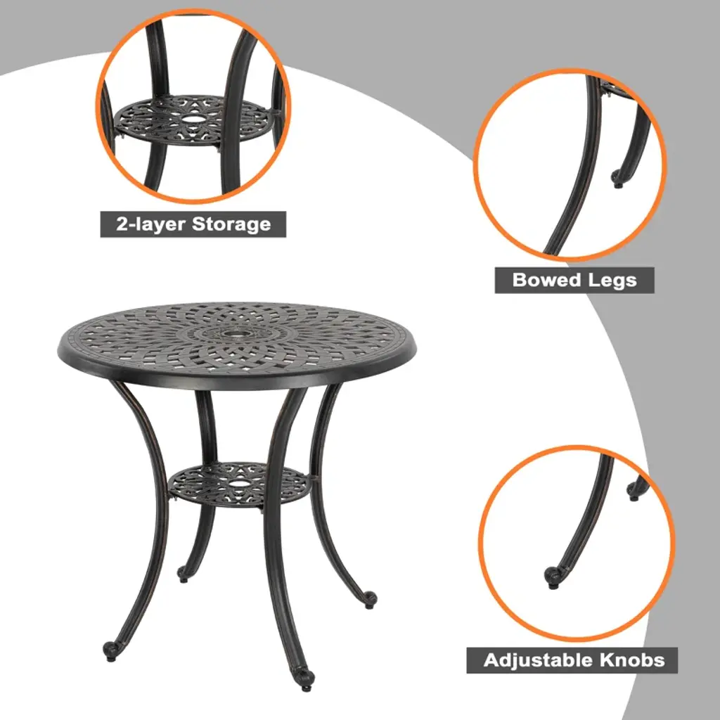 This outdoor bistro set is an amazing addition for any patio. Comes complete with matching table and chairs which made from lightweight and rust resistant cast aluminum for your durable using. Spending the patio time with your family and this new stylish cast aluminum bistro set.