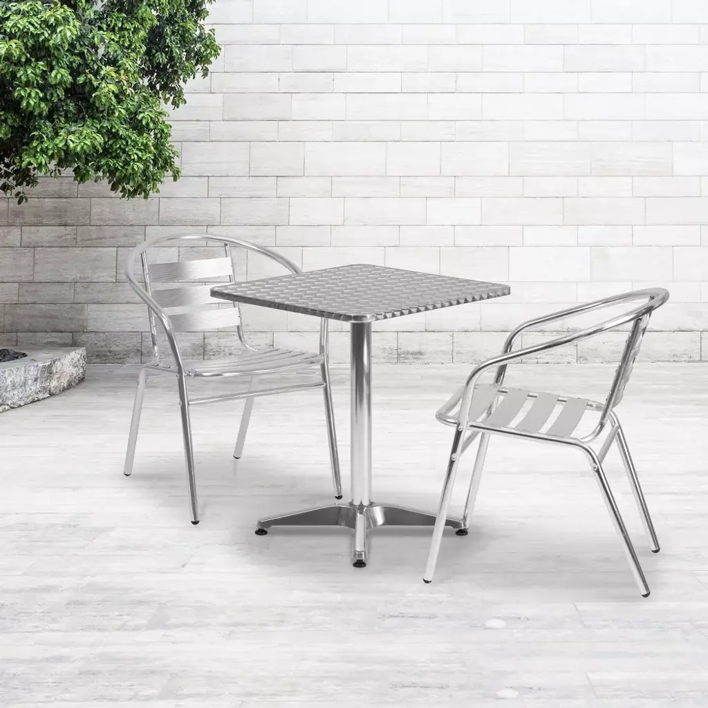Emma And Oliver 23.5" Square Aluminum Table Set With 2 Slat Back Chairs