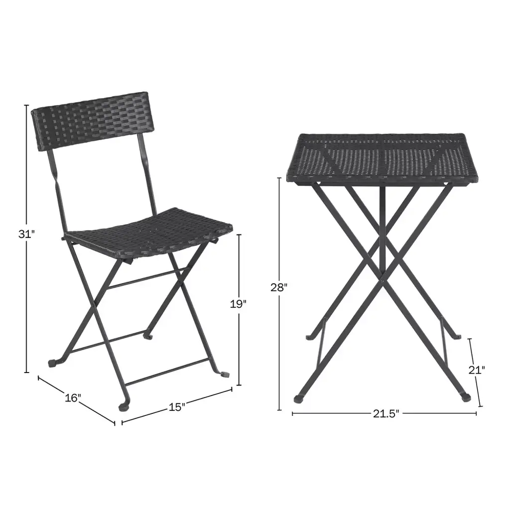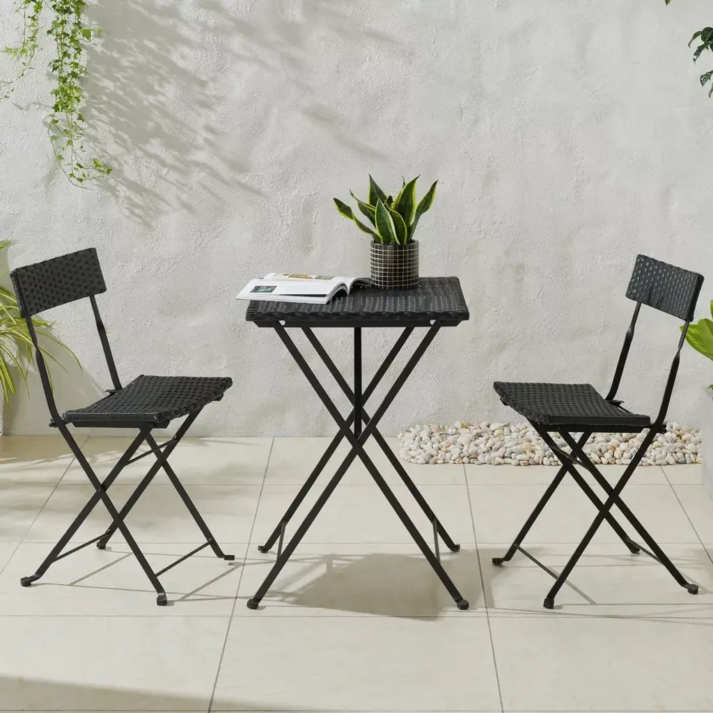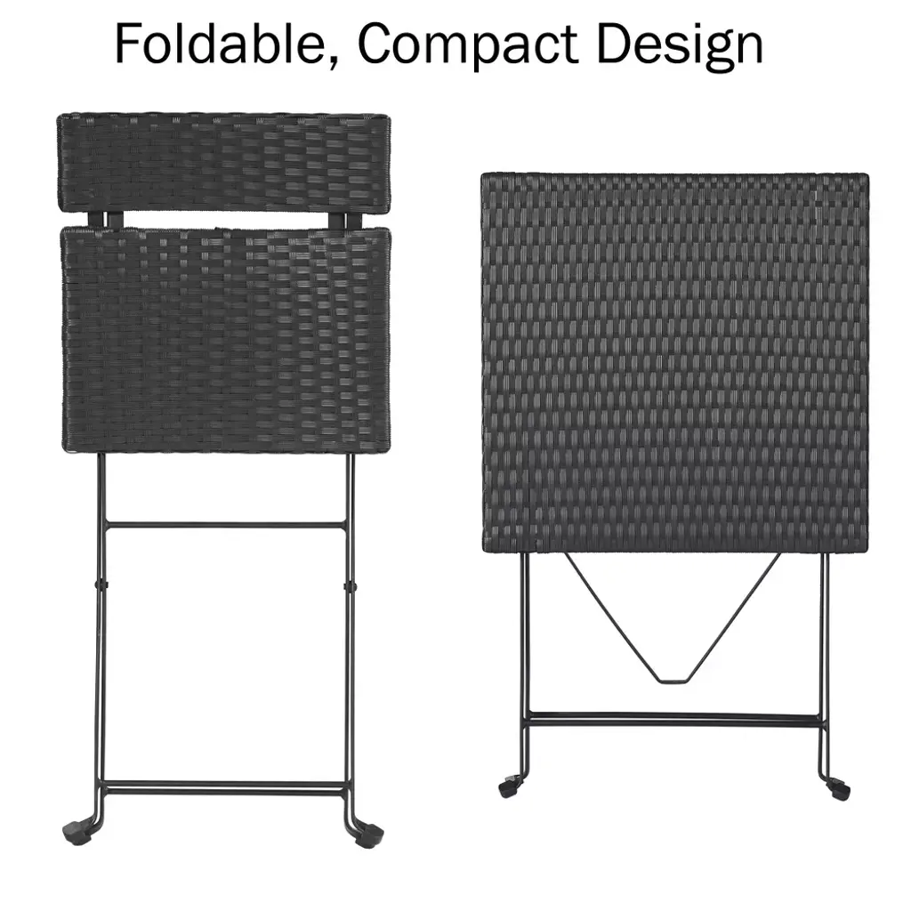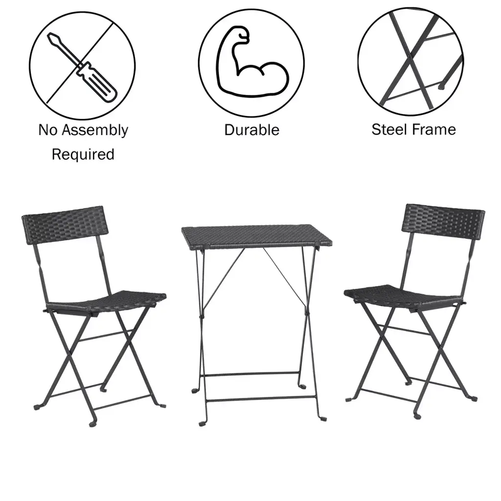 Folding Patio Bistro Set '? 3-piece Rattan And Steel Cafe Table And Chairs For Porch Deck