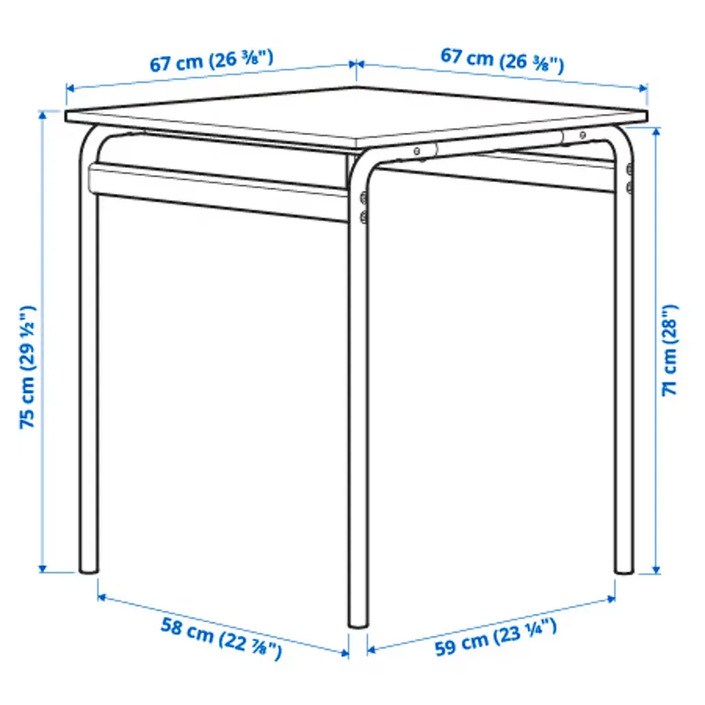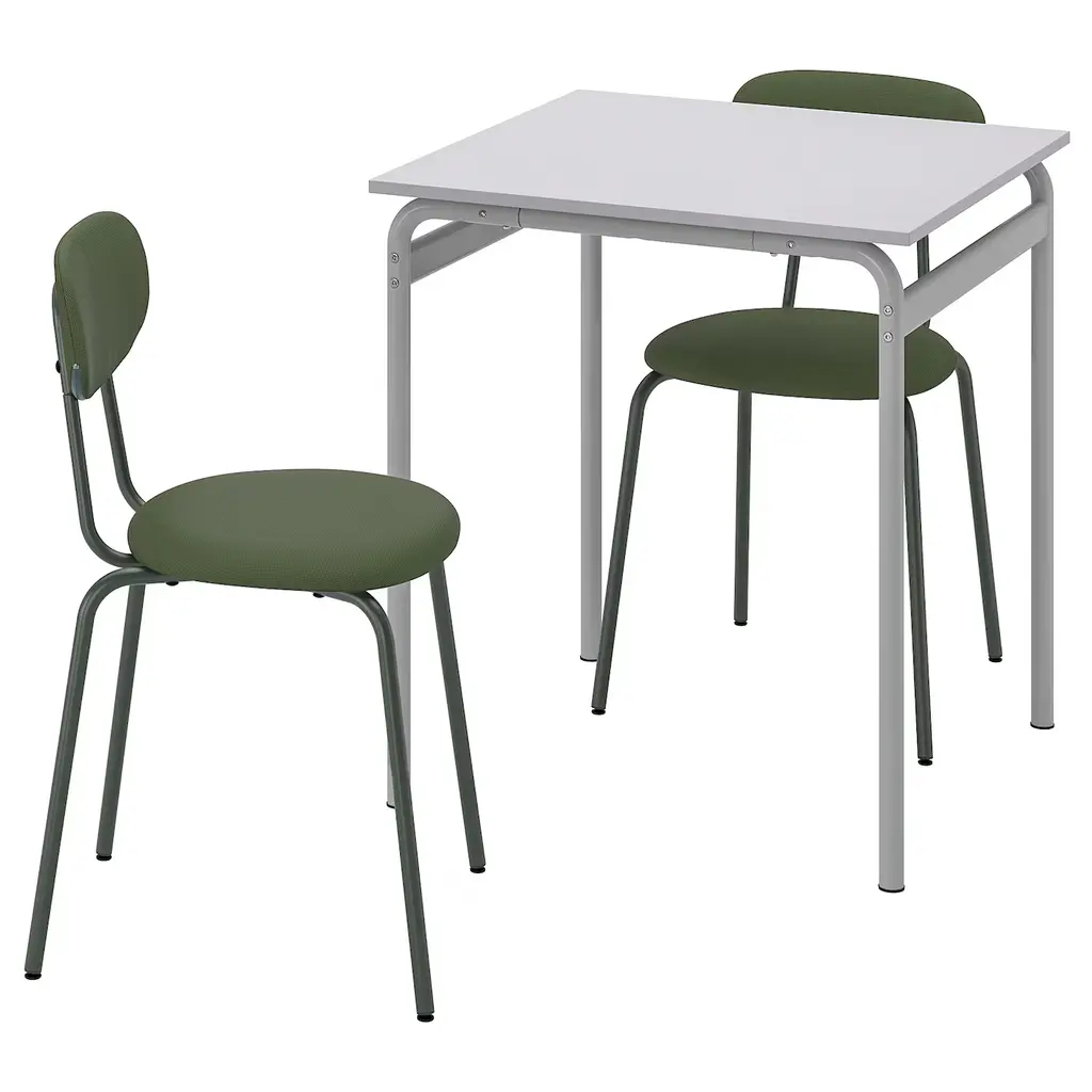 GRÅSALA / ÖSTANÖ Table and 2 chairs - gray/Remmarn deep green 26 3/8 ". Small dimensions make the table easy to furnish with, even when space is limited. The melamine table top is moisture resistant, stain resistant and easy to keep clean. Recommended for indoor use only.