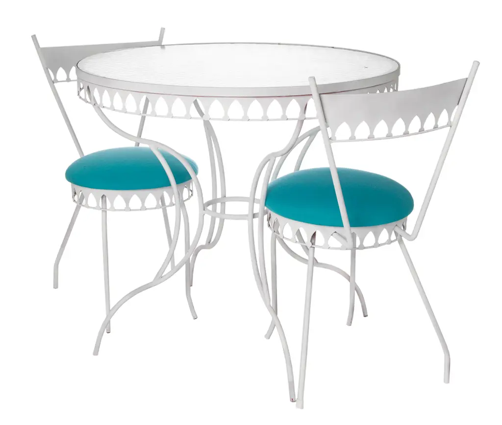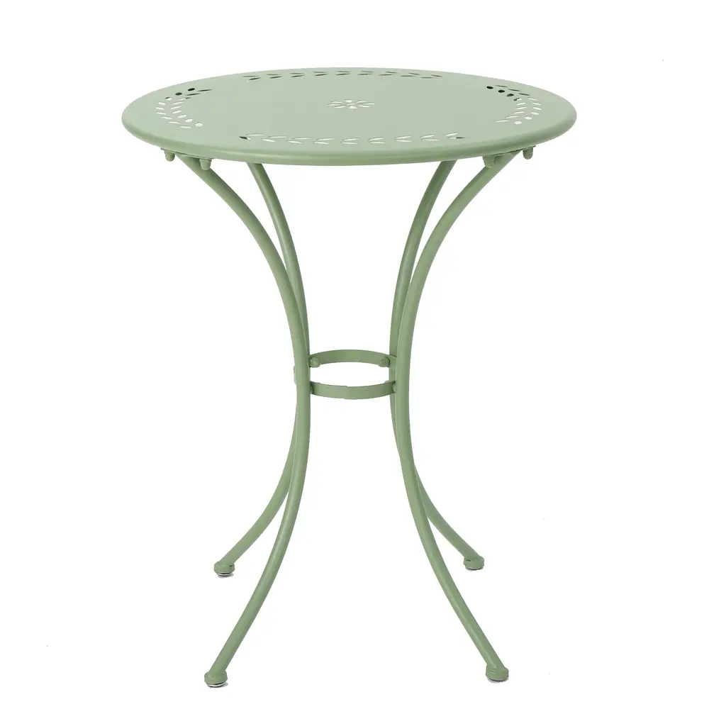 Elevate your space with this chic bistro set, complete with one table and two chairs. The floral and leaf cutout pattern brings a unique, decorative touch to any environment. The curved backs ensure comfort and style. The round tabletop offers ample space for drinks, snacks, or decorative pieces.
