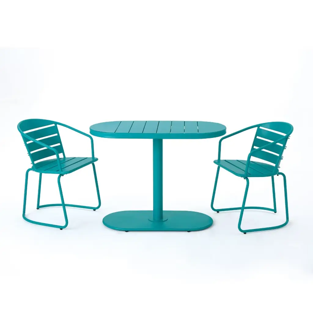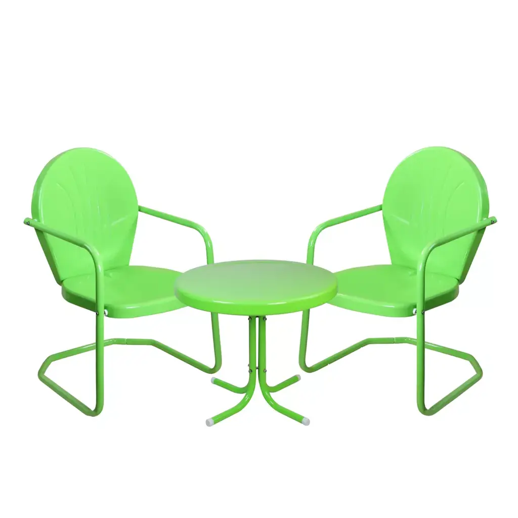 Pursuant 3-Piece Iron Bistro Set With Round Table And 2 Curved Back Chairs - Green