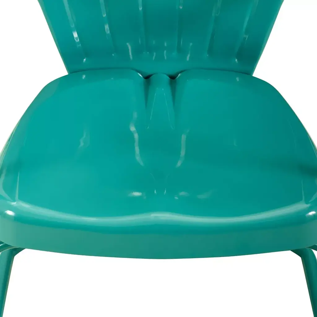 Inspired by the designs of yesteryear, the Ridgeland 3pc Bistro Set brings class and charm to your outdoor space. Two vintage-style chairs in vibrant colors surround a simple metal bistro table for a fun and functional outdoor lounging experience. Each chair features a clamshell back with decorative grooves, plus a cantilever base that provides just enough flex for lounging in comfort. The table’s sturdy pedestal base is comprised of four metal legs and easily tucks between the chairs, making the Ridgeland 3pc Bistro Set ideal for a small balcony or patio.